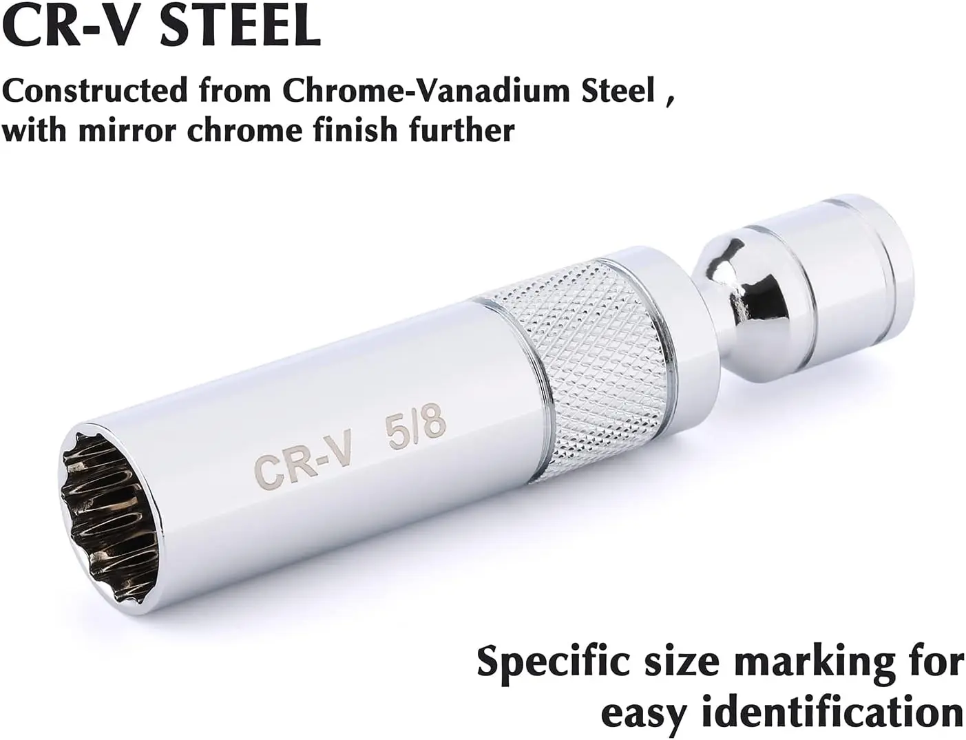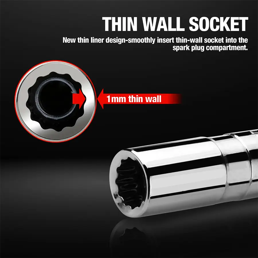 ·The spark plug socket has 360 degree swivel action for maximum flexibility, 12-point design for enhanced gripping power.