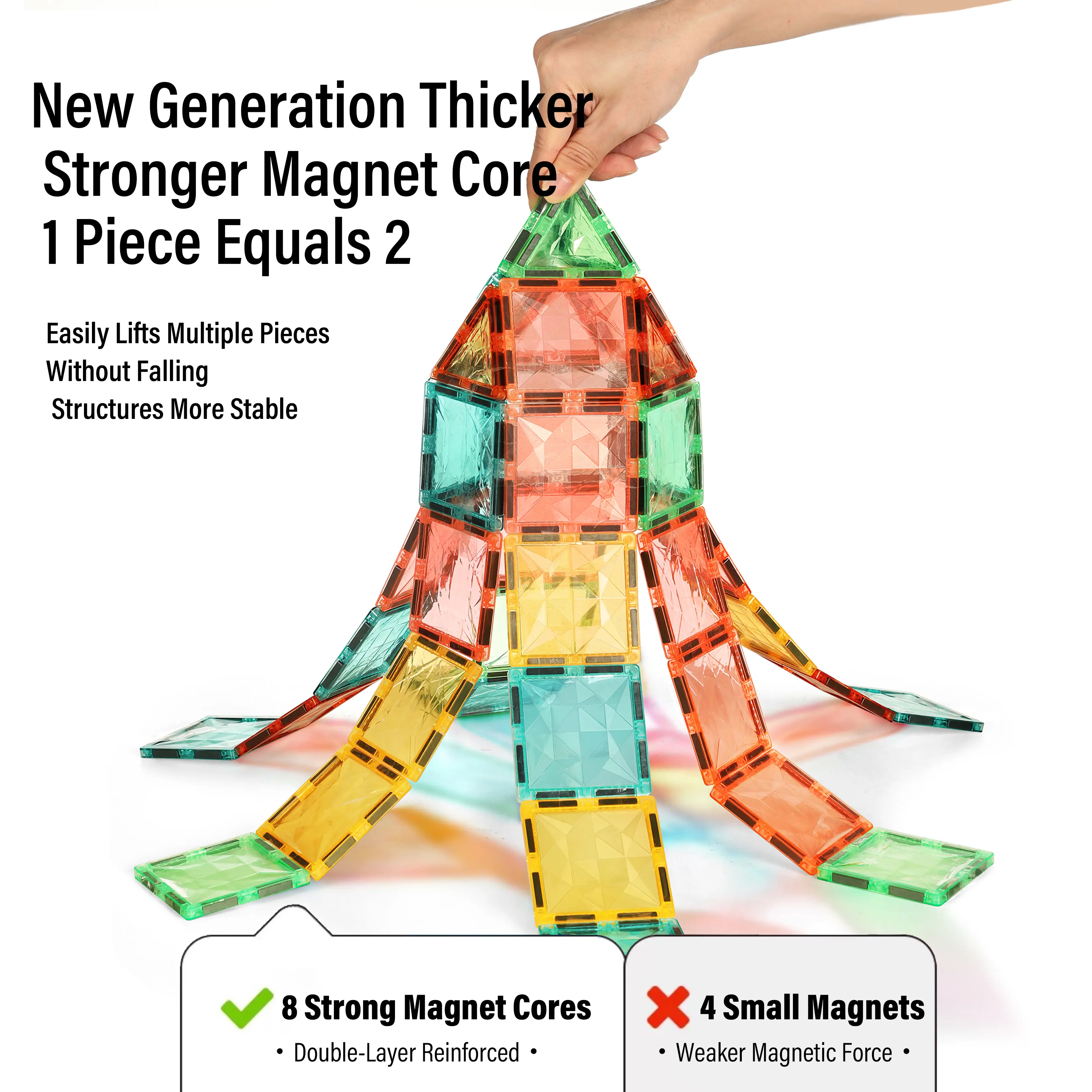 • With their vibrant colors and magnetic properties, these blocks are not just toys but also educational tools. They support early learning and play, making them an excellent choice for toddlers. Enjoy watching your child explore and learn with these magnetic tiles.