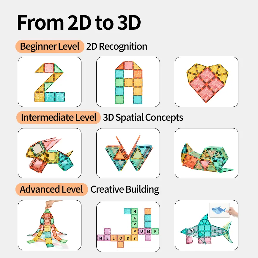 • The magnetic tiles are designed as preschool toys, promoting Montessori educational methods. They help in developing fine motor skills and cognitive abilities. Safe for young children, these toys are a wonderful way to engage kids in safe creativity.