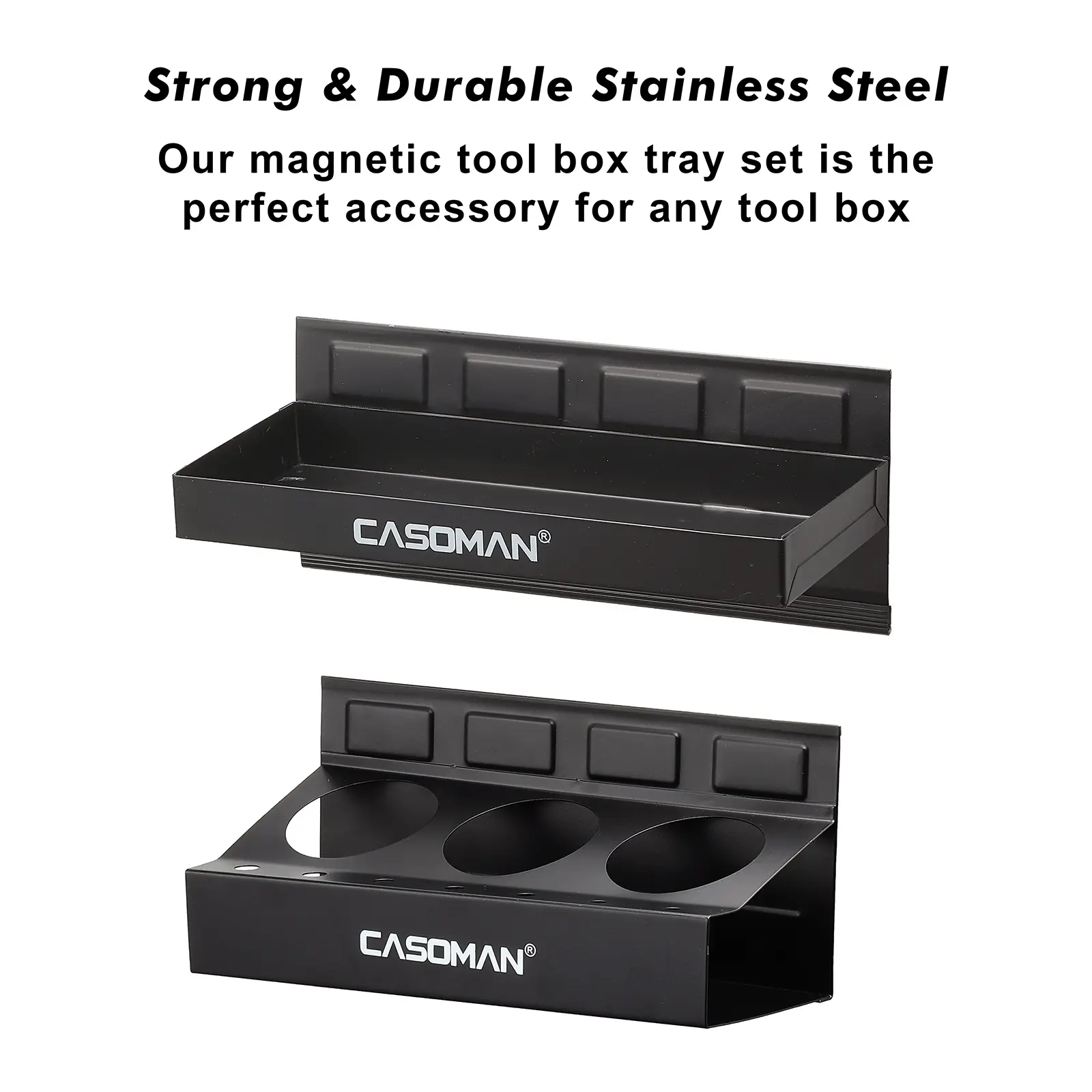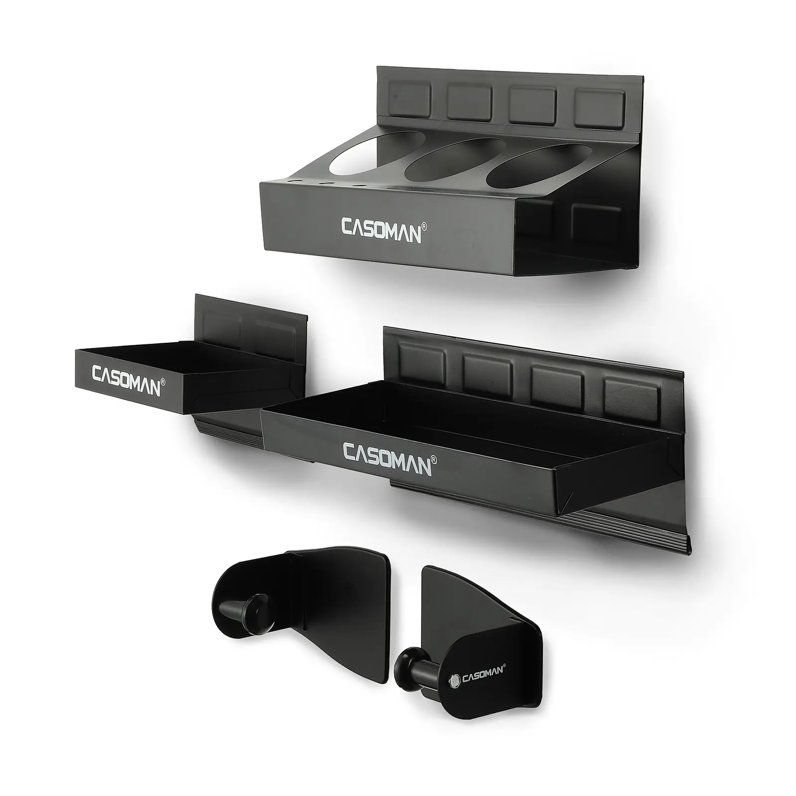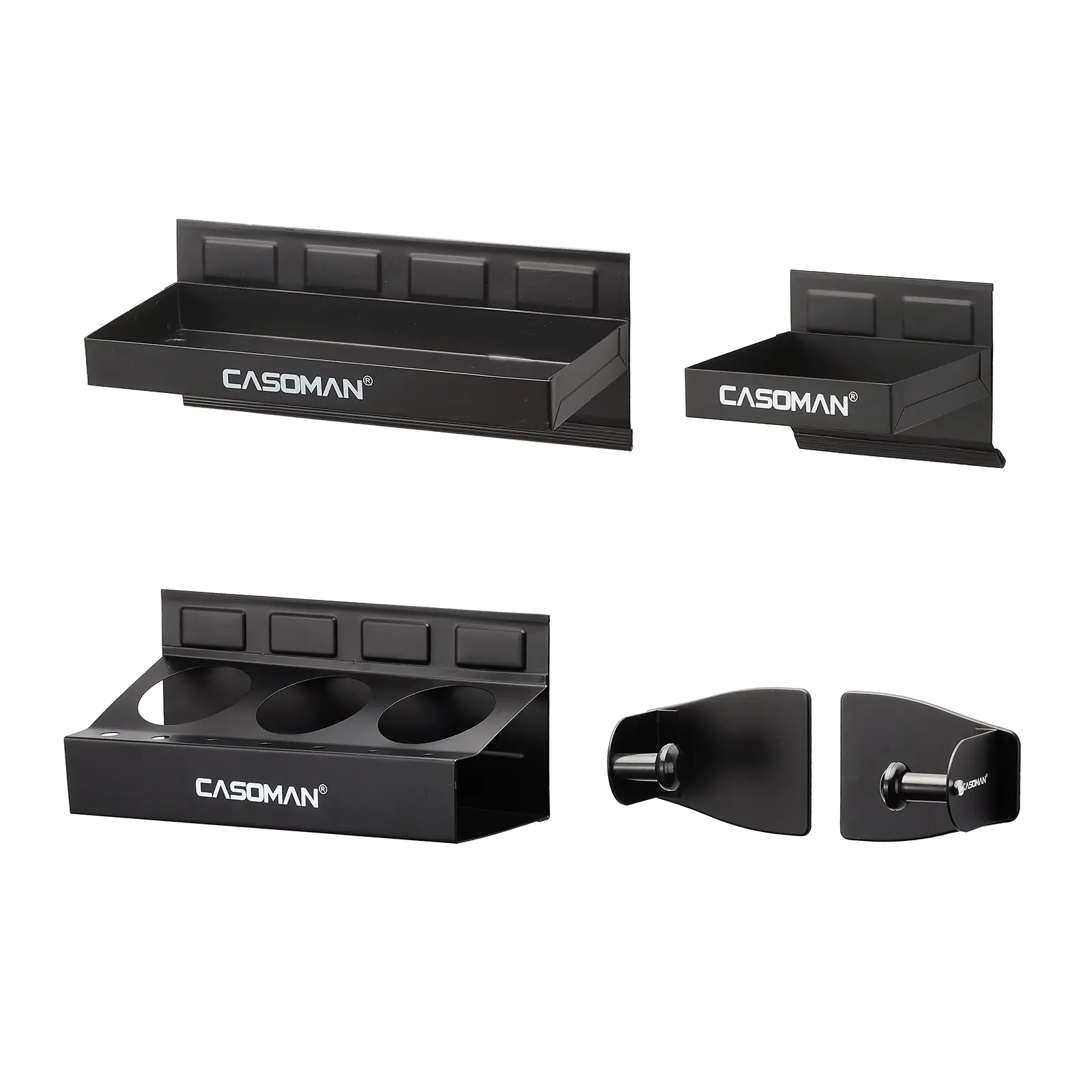 CASOMAN Magnetic Toolbox Shelf, Tray, Paper Towel Holder, 4-Piece Set, Black, Variety of Use, Durable, Magnets Any Metal Surface