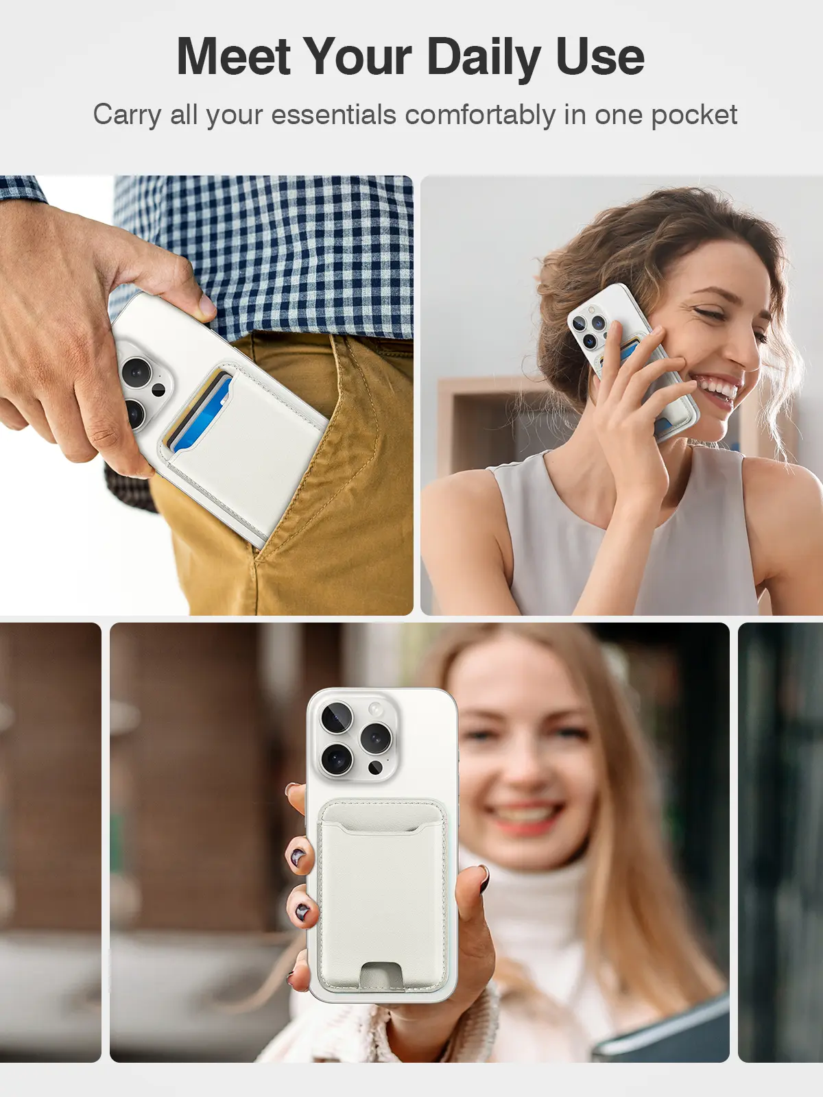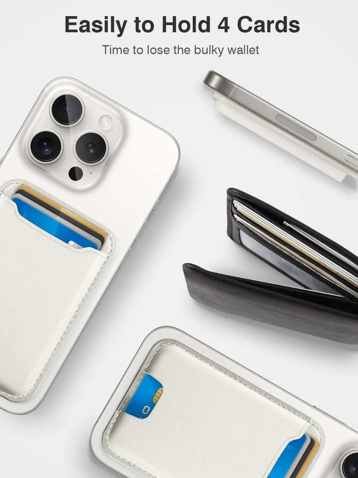 Easily Access 4 Cards: This magnetic phone wallet can easily store up to 4 cards without additional bulk; The built-in card clip hold cards firmly in place even if it’s just one card, a thumb slot gives you quick and easy access to the card you need