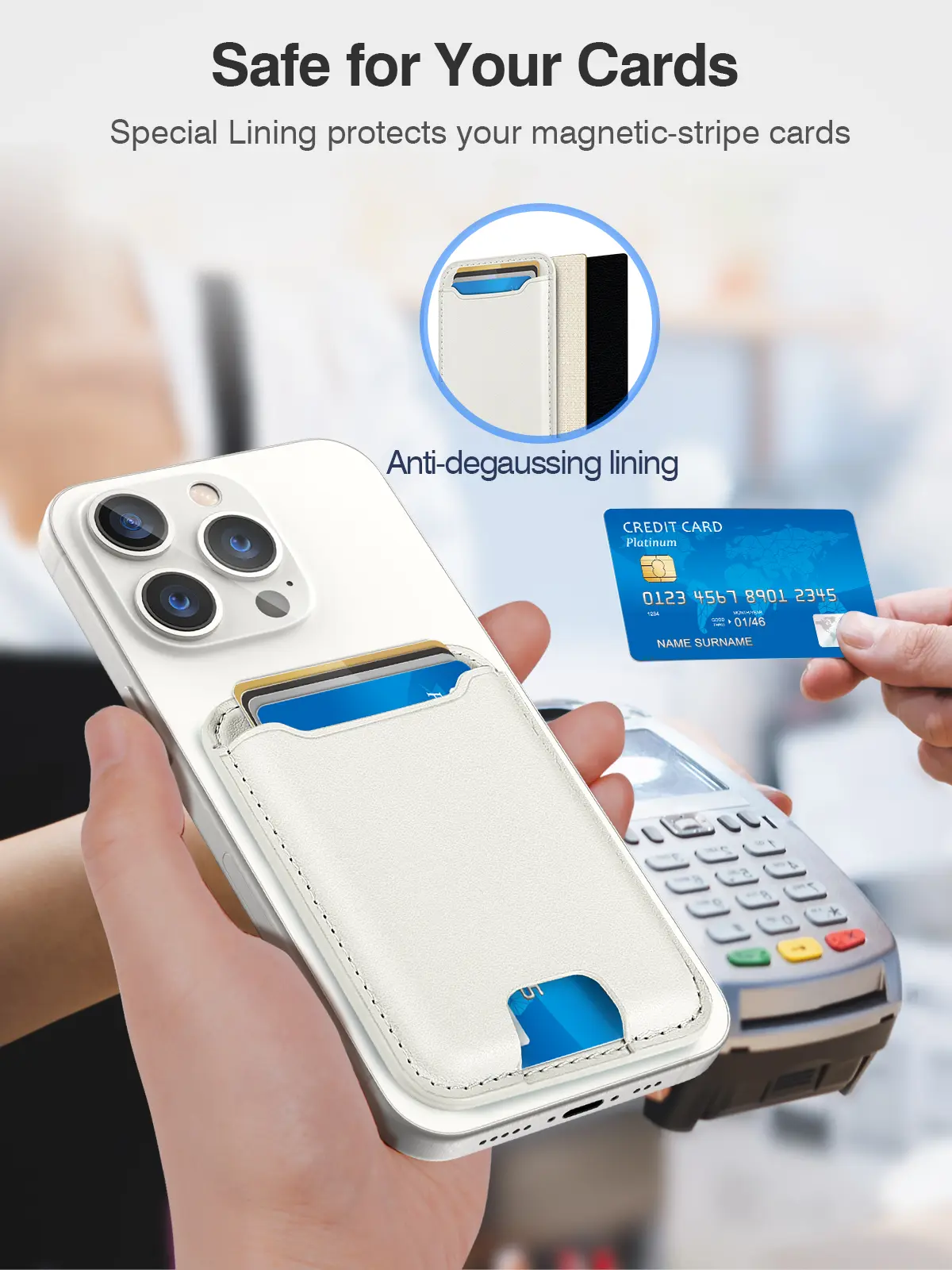 Super Strong Magnetic: The only solution in the market provides an impressive 4.4lbs magnetic force, that allow the magsafe wallet to effortlessly snap into place on the back of your Phone; No more concerns about complicated installation and iPhone drops