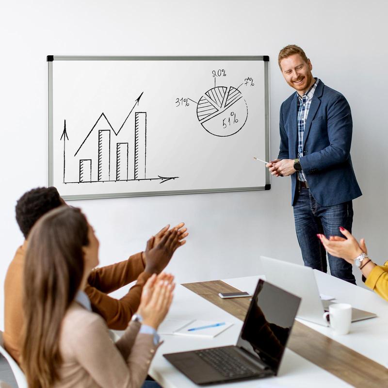 ·Safety And Stability: The whiteboard's silver aluminum frame helps prevent scratches and enhances its stability. With the ABS corner design and screws underpinning the corners, it ensures the safety of whoever is using it.