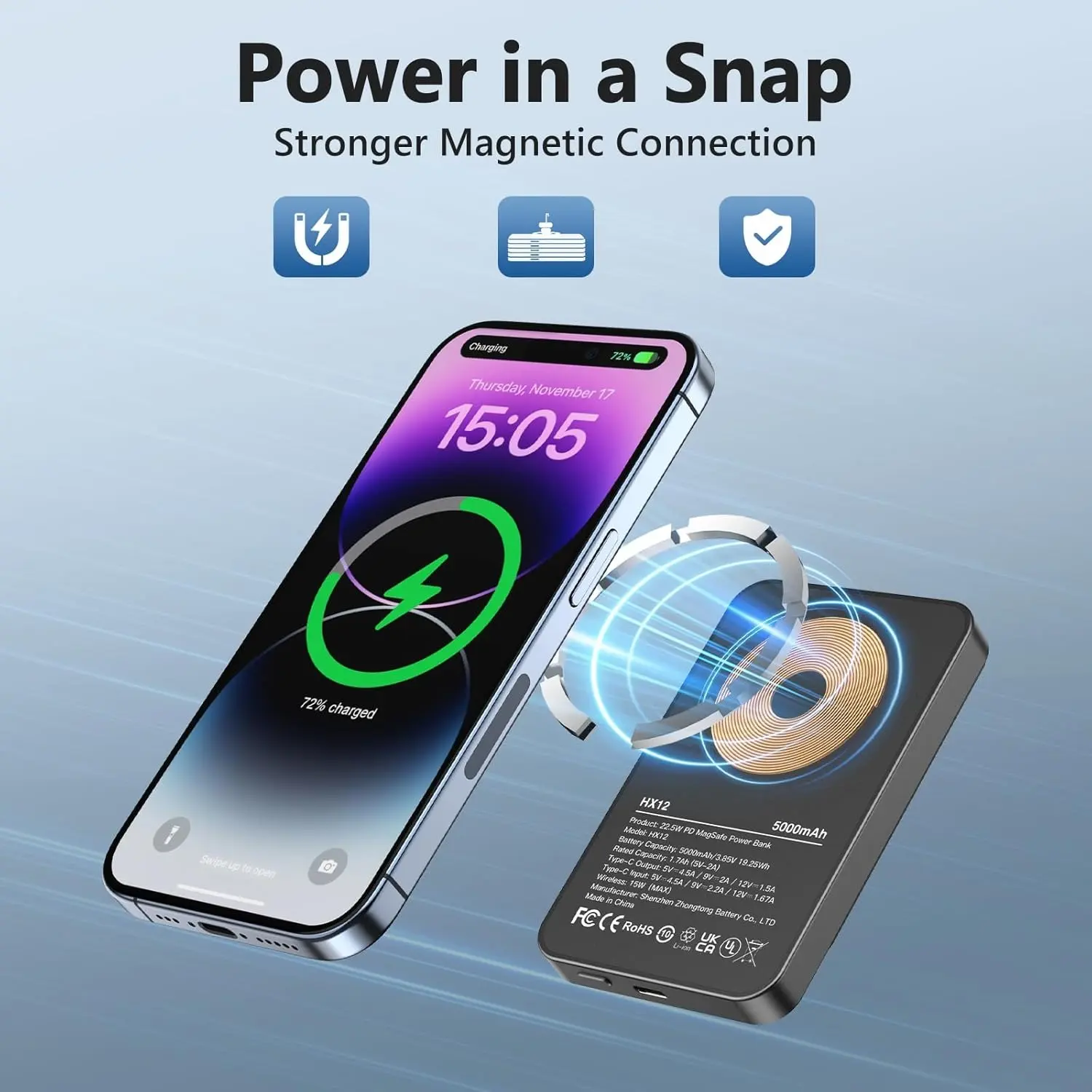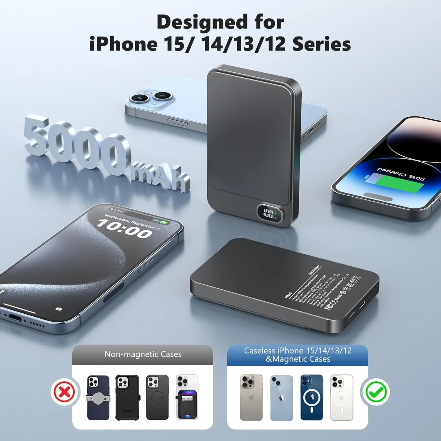 All-Day Power: Charges iPhone 16/15/14/13/12 Pro up to 2 times; 1.5 times for Pro Max and Plus models.