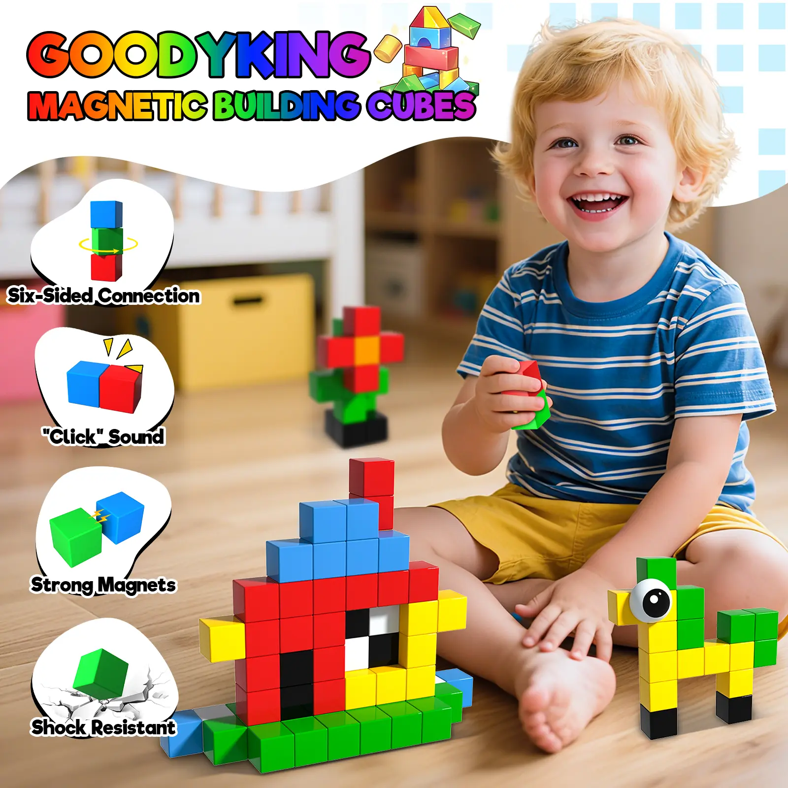 Unlike flat magnetic tiles, these chunky 3D cubes are specially designed for little hands (ages 3–5) to improve grasping strength and early building skills.