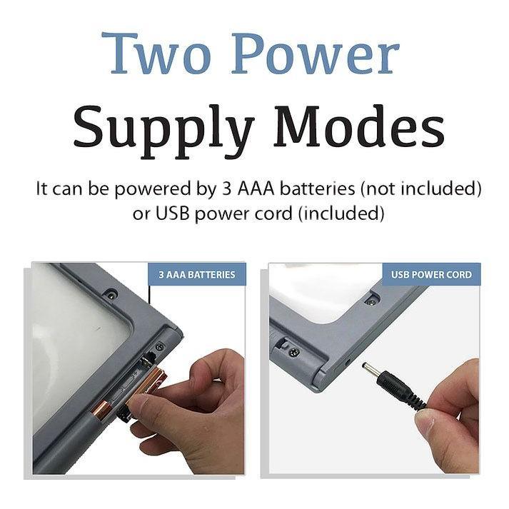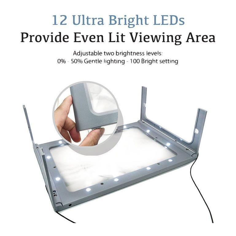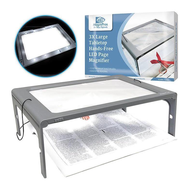 ·Includes 3X full-page magnifier with foldable flip-out legs, cleaning cloth, and plug-in cord