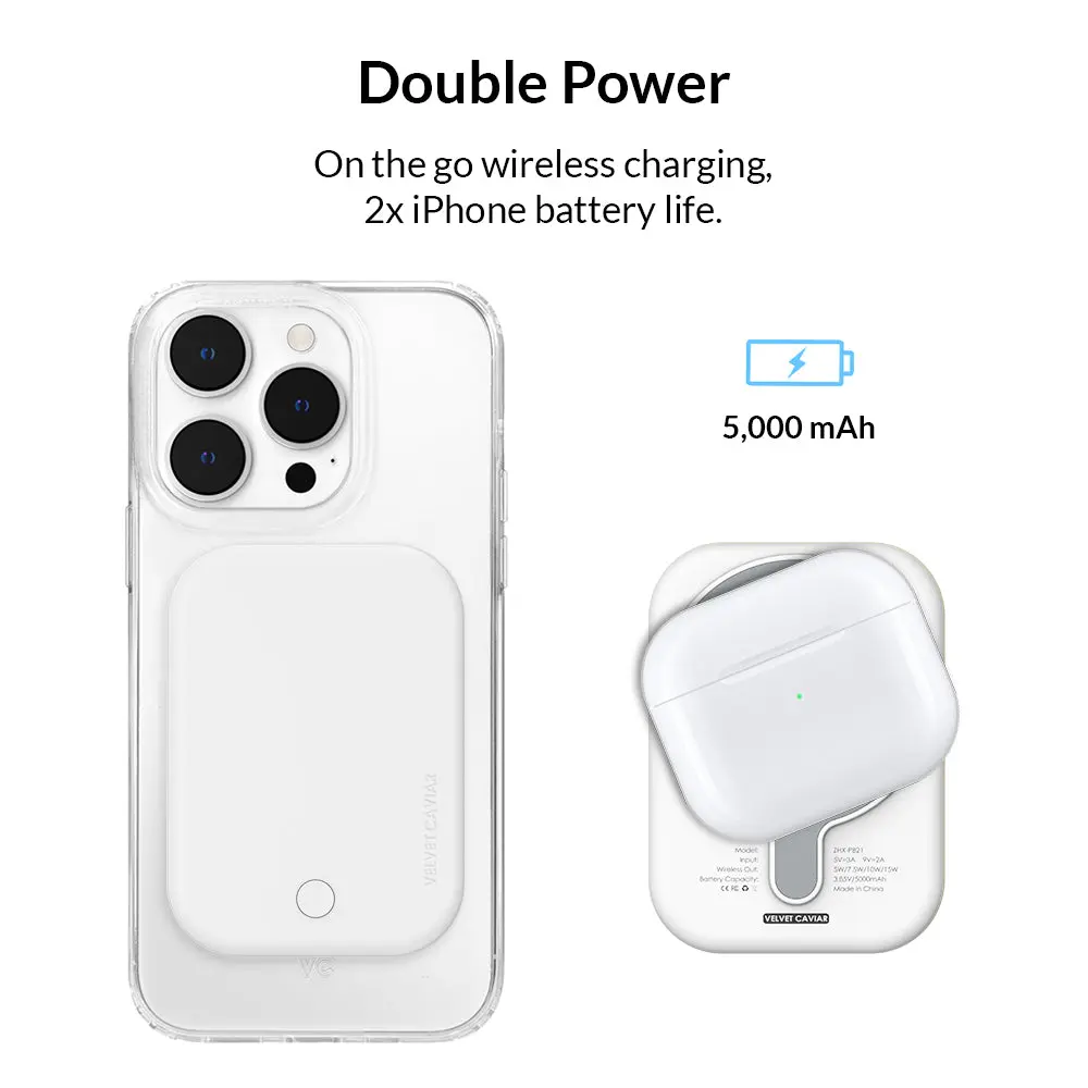 5. Velvet Caviar White MagSafe Battery Power Pack - Fast Charging Extra Power, Strong Magnetic Grip Compatible iPhone Wireless Chargers