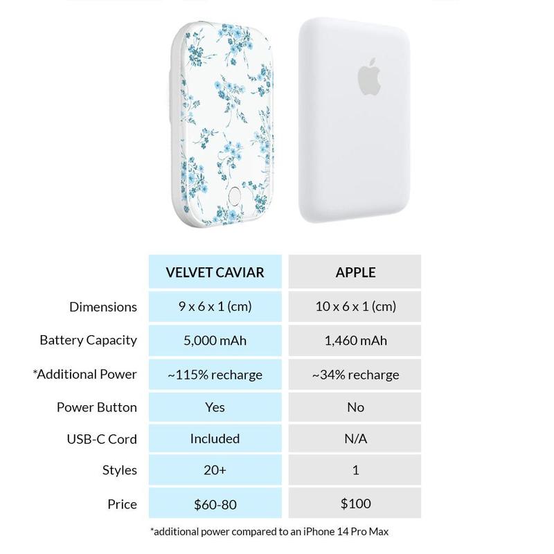 Velvet Caviar French Blue Floral MagSafe Battery Power Pack - Fast Charging Extra Power, Strong Magnetic Grip Compatible iPhone Wireless Chargers