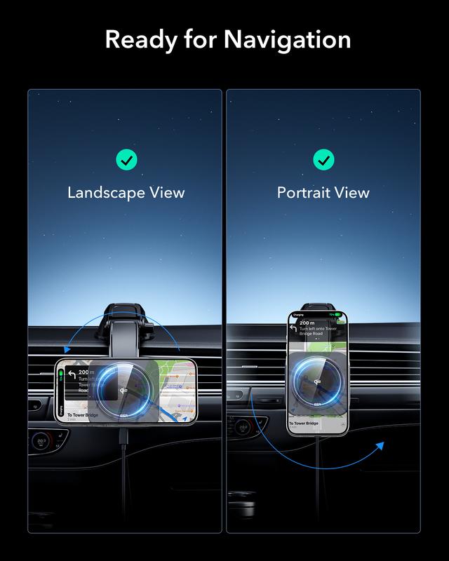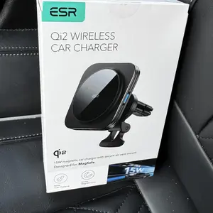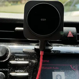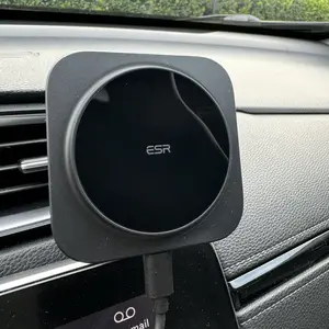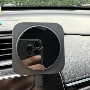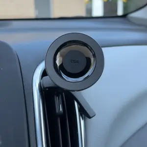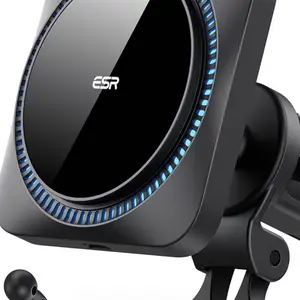Ever struggled with your phone slipping off the car charger on bumpy roads? The ESR Qi2 15W MagSafe Car Mount Charger has you covered with a powerful 3,000 gf magnetic lock that keeps your iPhone 15, 14, 13, or 12 series firmly in place. Whether you prefer mounting on your air vent or dashboard, this charger offers flexible, secure placement with triple-point support and a handy dashboard anchor (just a heads-up: the anchor is a one-time use adhesive). Thanks to CryoBoost cooling technology, your phone stays cool while charging fast at 15W Qi2-certified speeds, so you never miss a beat on your drive. Plus, the 360° ball-joint rotation lets you switch between portrait and landscape modes effortlessly—perfect for navigation or hands-free calls. The package includes the MagSafe car mount charger, air vent clip, dashboard anchor, and a 3.3 ft USB-A to USB-C cable for quick setup. Ready to upgrade your drive with reliable, fast wireless charging? Grab the ESR MagSafe Car Mount Charger and enjoy a safer, cooler, and more convenient ride today!