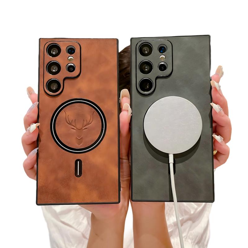 [Free!!Ship!] MagSafe Classic Matte PU Leather Case For Samsung Galaxy S25 Ultra S24 S23 S22 S21 S20 Fawn Pattern Shockproof Phone Cover