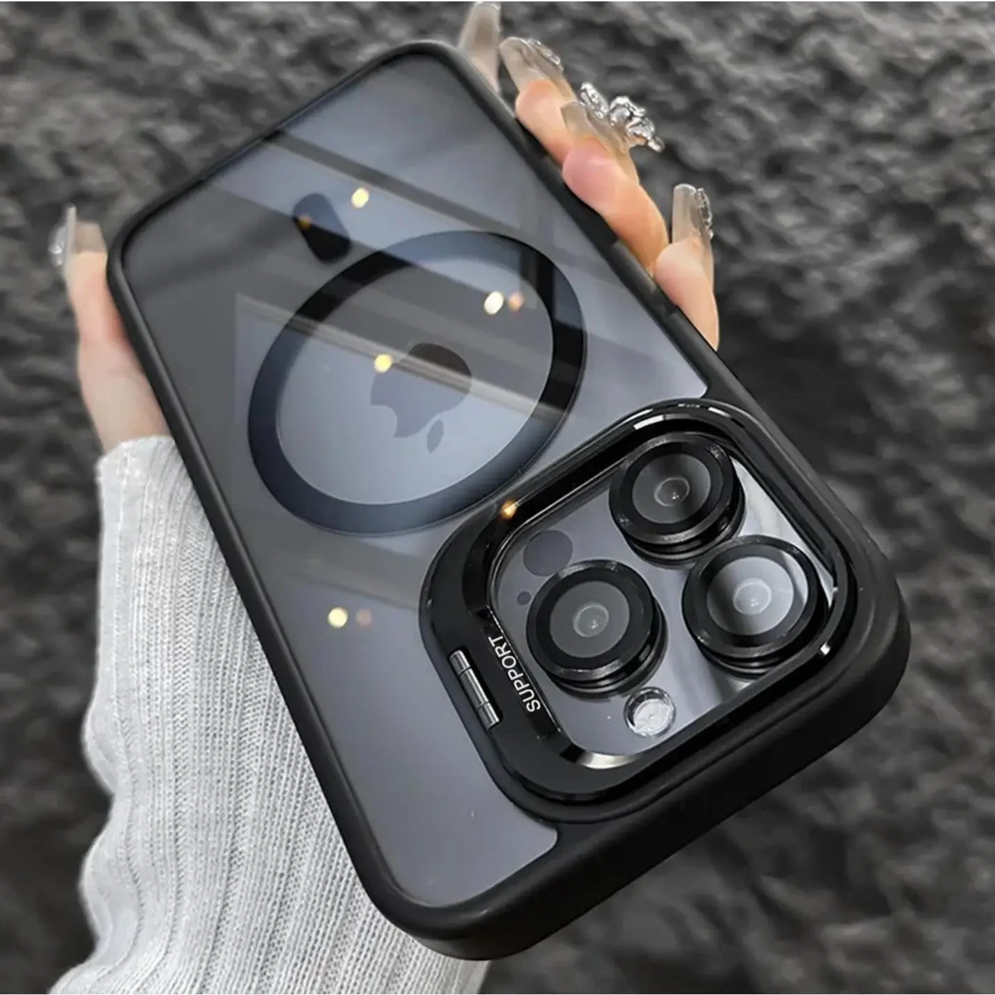 【Invisible Camera Stand】The case with stand would definitely be a great changer for your easy life. With the invisible camera kickstand, this phone case props your phone up anywhere to watch videos, movies without adding any bulks.