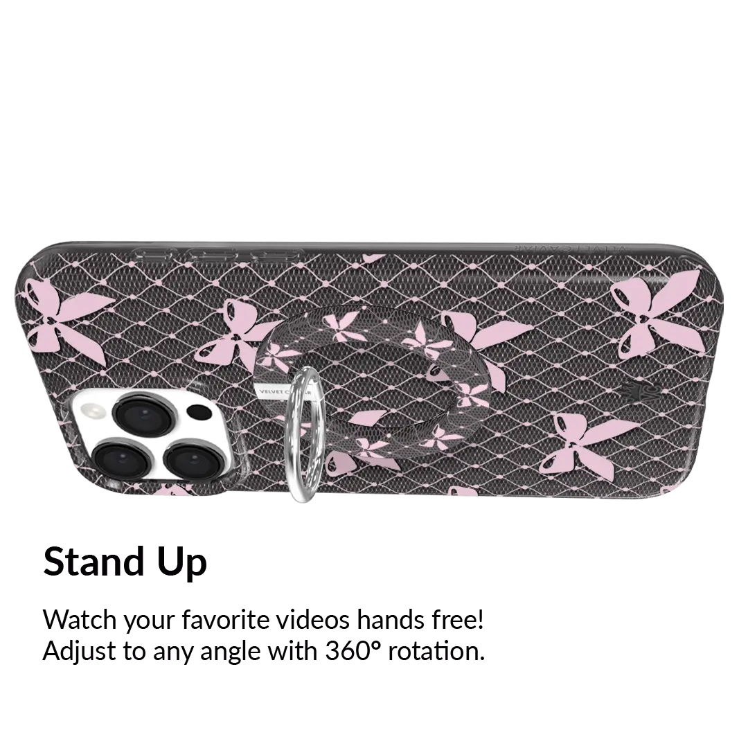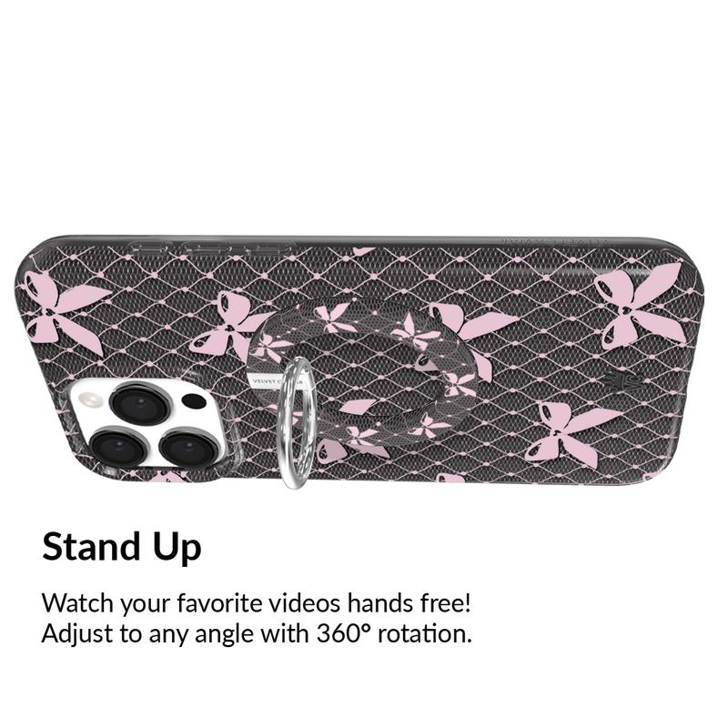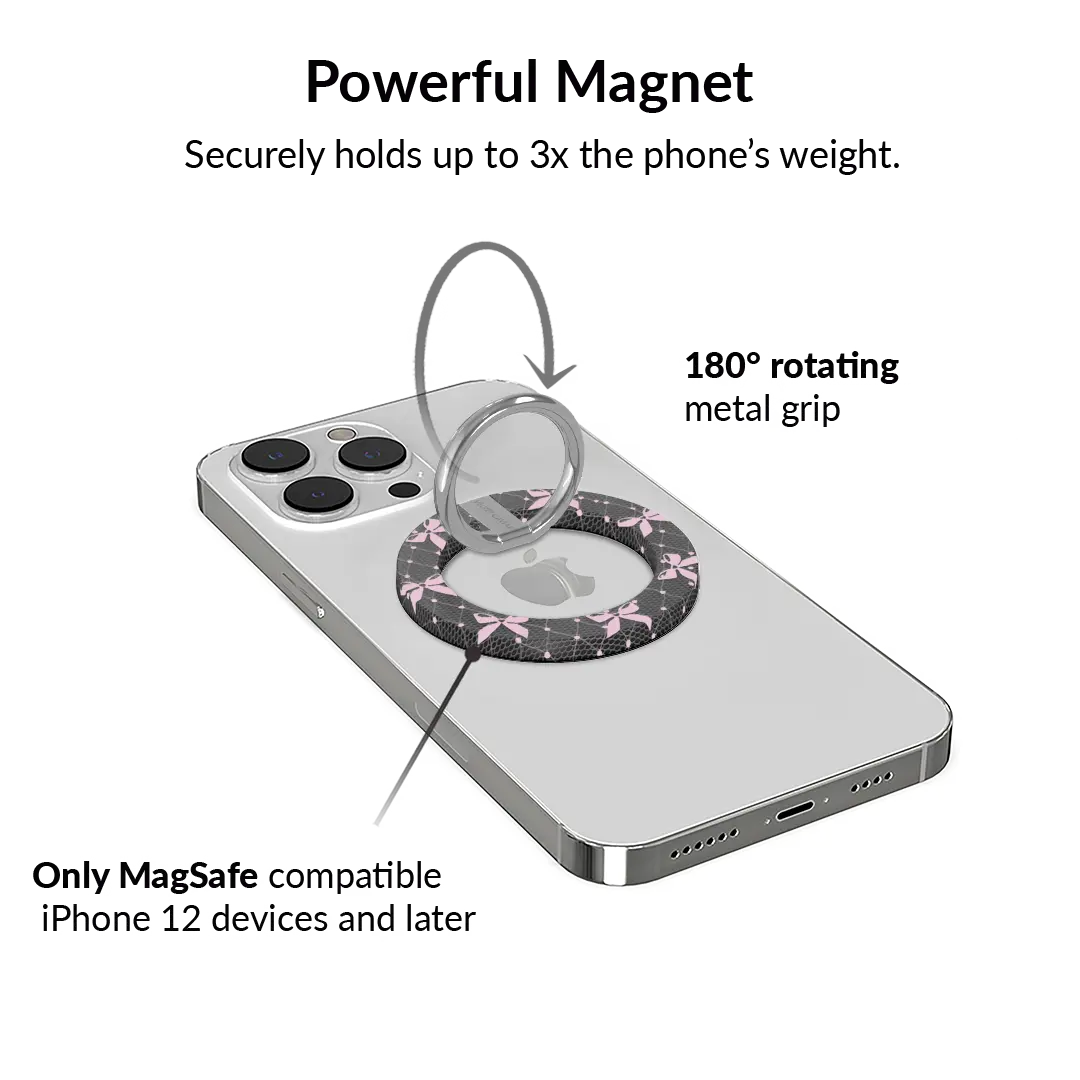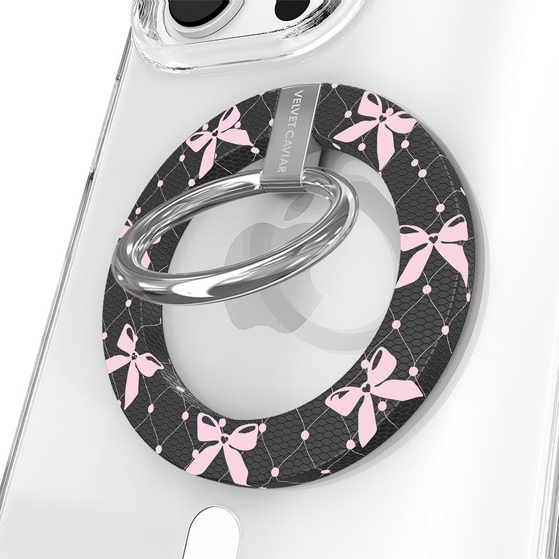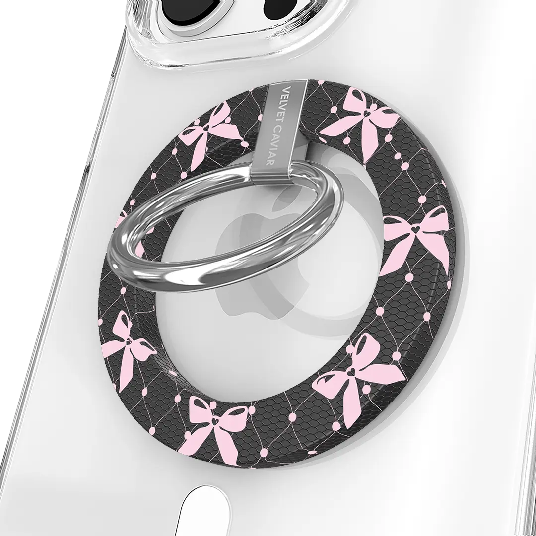 Velvet Caviar Lacy Pink Bows MagSafe Grip Ring - Secure Magnetic Phone Grip & Stand for iPhone