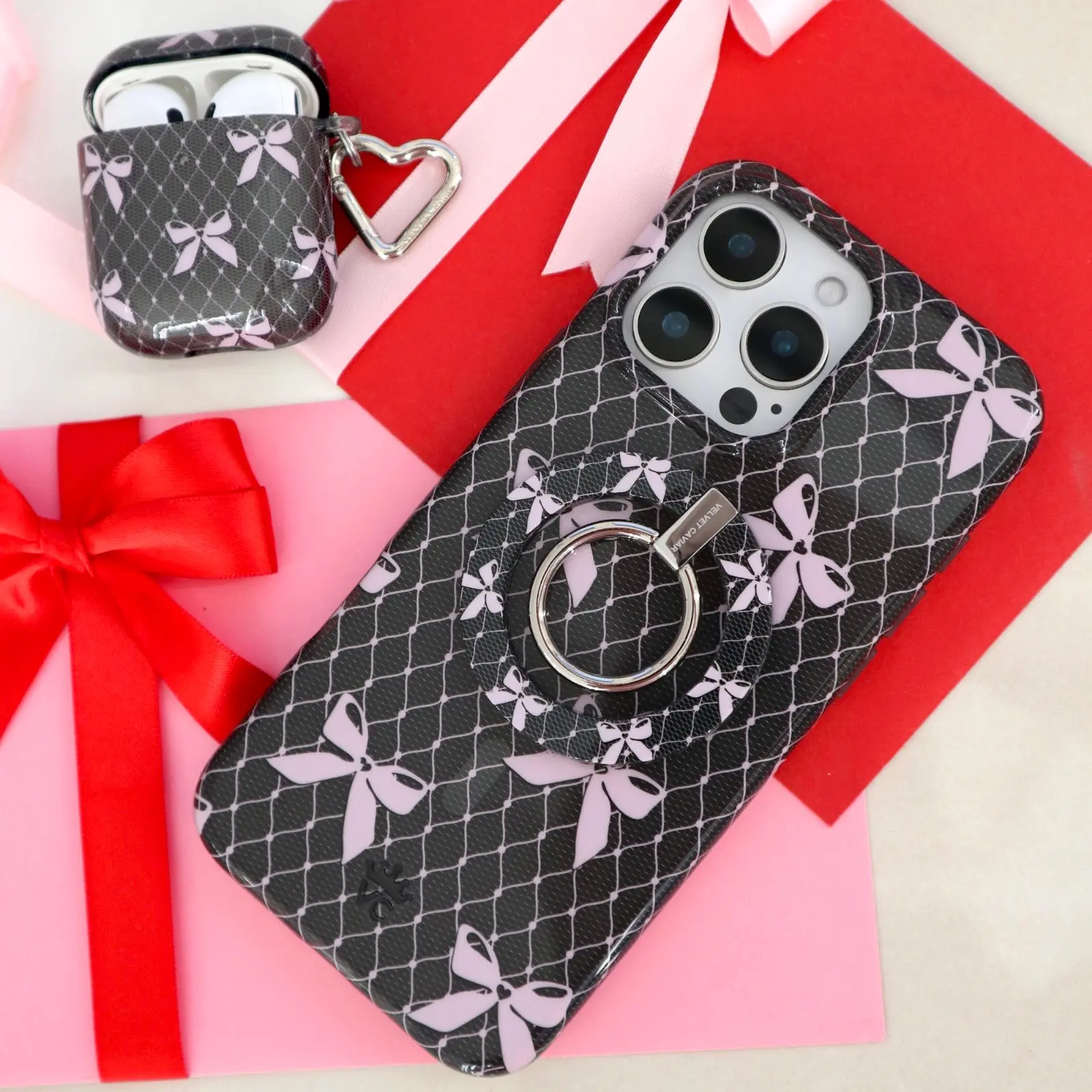 5. Velvet Caviar Lacy Pink Bows MagSafe Grip Ring - Secure Magnetic Phone Grip & Stand for iPhone
