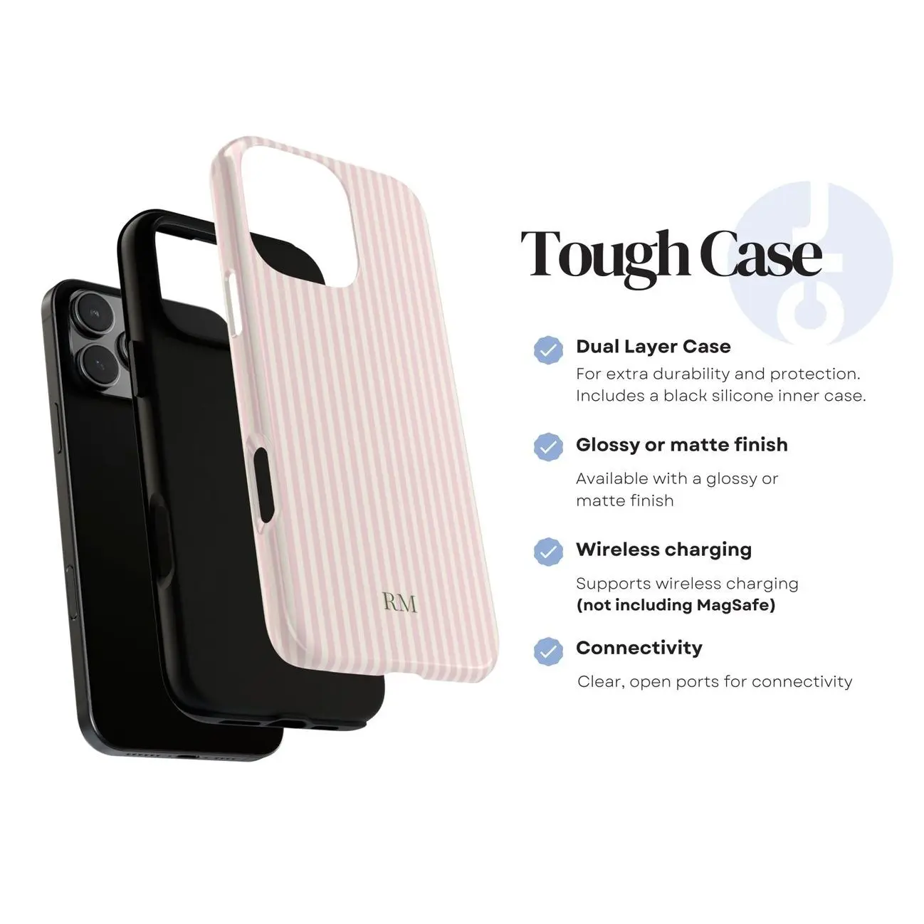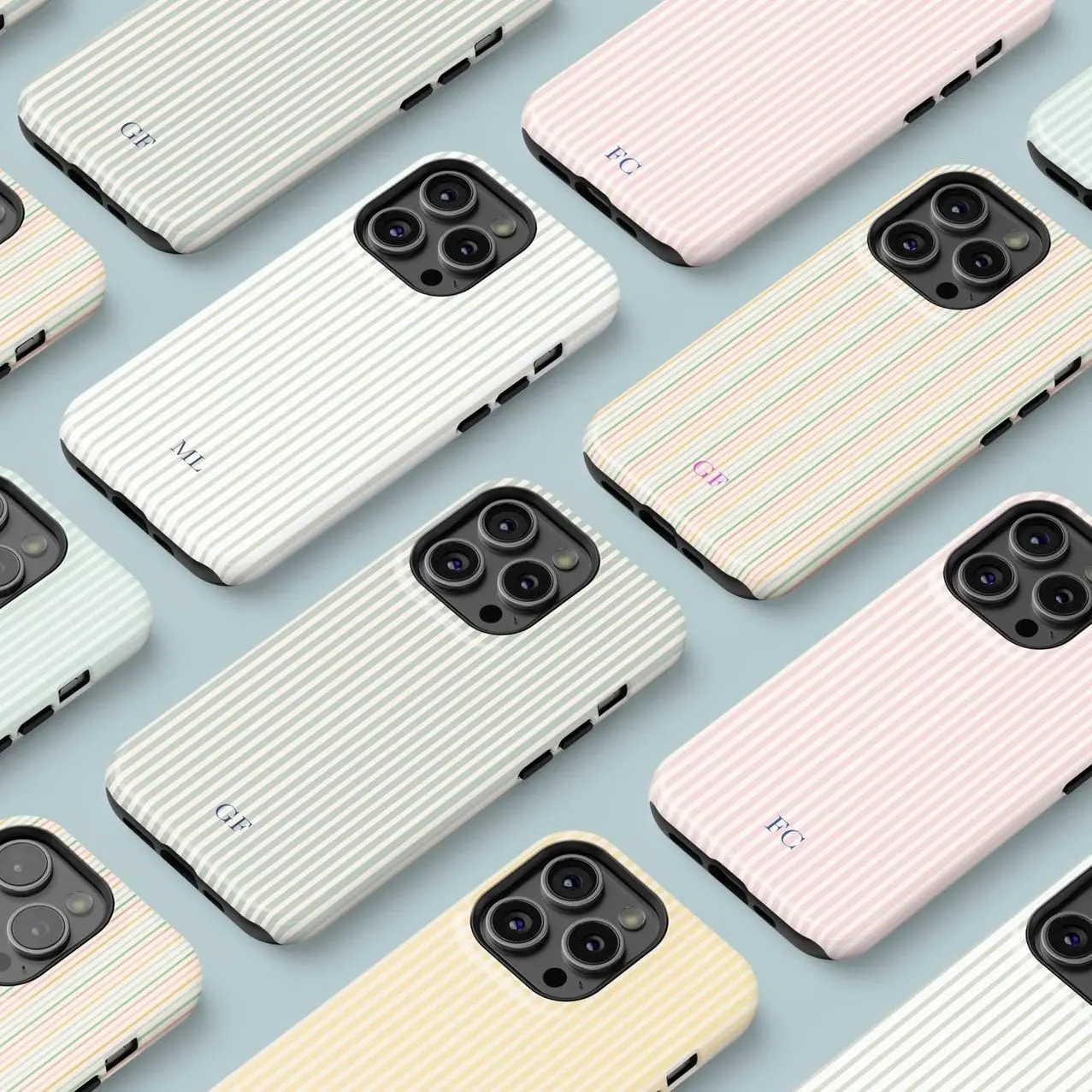 Magsafe Personalized Monogram Phone Case Stripes Initials iPhone 16 15 14 13 12 11 Pro Max
