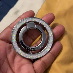 Ever fumble with your phone while trying to text, watch videos, or snap selfies? The MagSafe Ring Stand is here to make life easier and hands-free. This magnetic phone grip snaps directly onto any MagSafe-compatible case or device, giving you a secure hold that feels natural and comfy. Whether you're binge-watching your favorite shows or capturing the perfect selfie, this versatile stand keeps your phone steady and ready. Its sleek, lightweight design means you can carry it everywhere without bulk. Plus, it comes in eye-catching colors like Twinkle Disco, Twinkle Diamond, and Mother of Pearl, so you can accessorize your phone with a touch of sparkle. Inside the box, you get one magnetic ring stand ready to attach and enhance your phone experience. Say goodbye to awkward grips and hello to effortless style and function. Ready to upgrade your phone game? Snap on this MagSafe Ring Stand and enjoy hands-free convenience wherever you go!