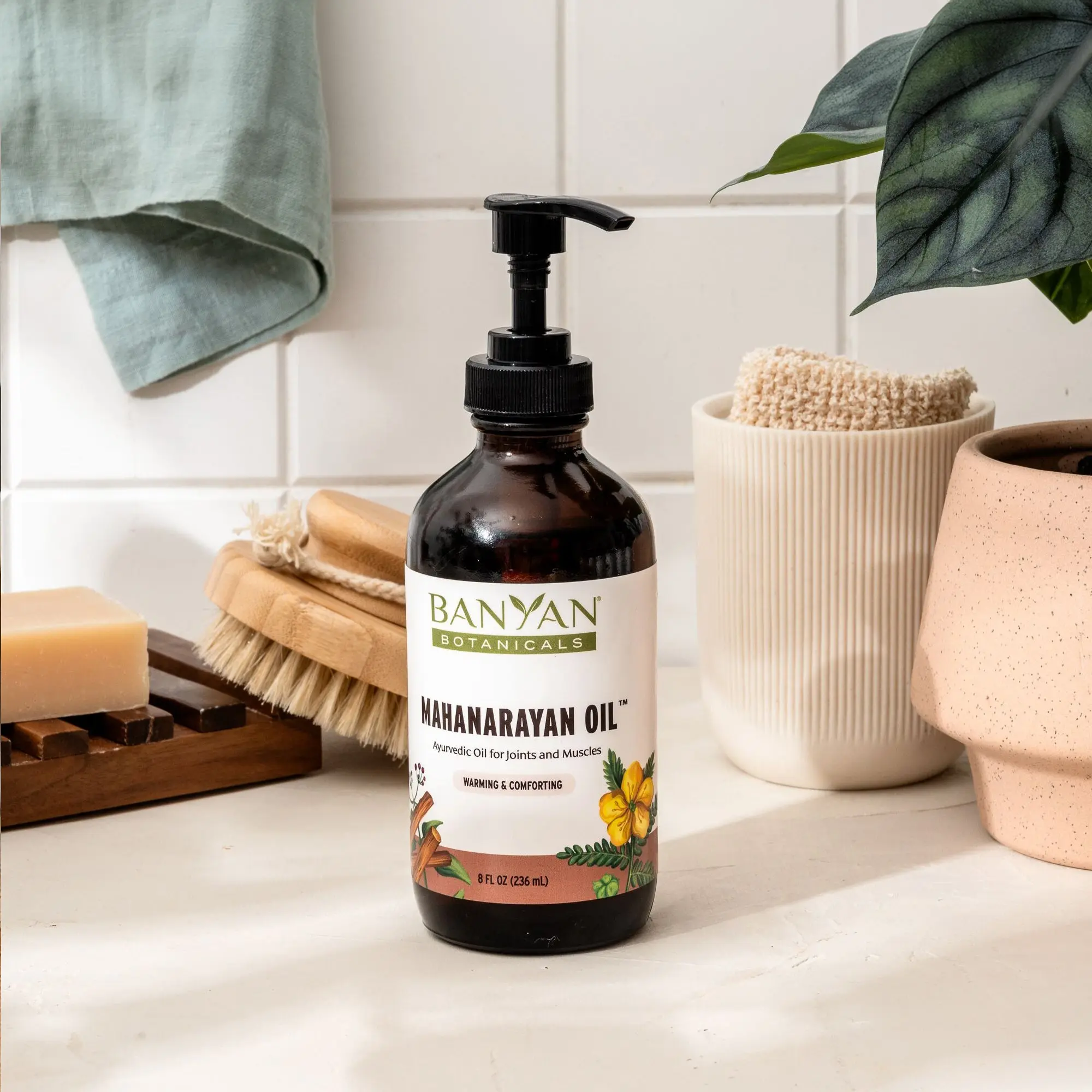 Mahanarayan Oil is Ayurveda's go-to formula for supporting an active lifestyle. Whether you choose to gently massage into the muscles, joints, and tendons, or you enjoy a full-body massage, Mahanarayan Oil helps melt away tension and soothe the soul.