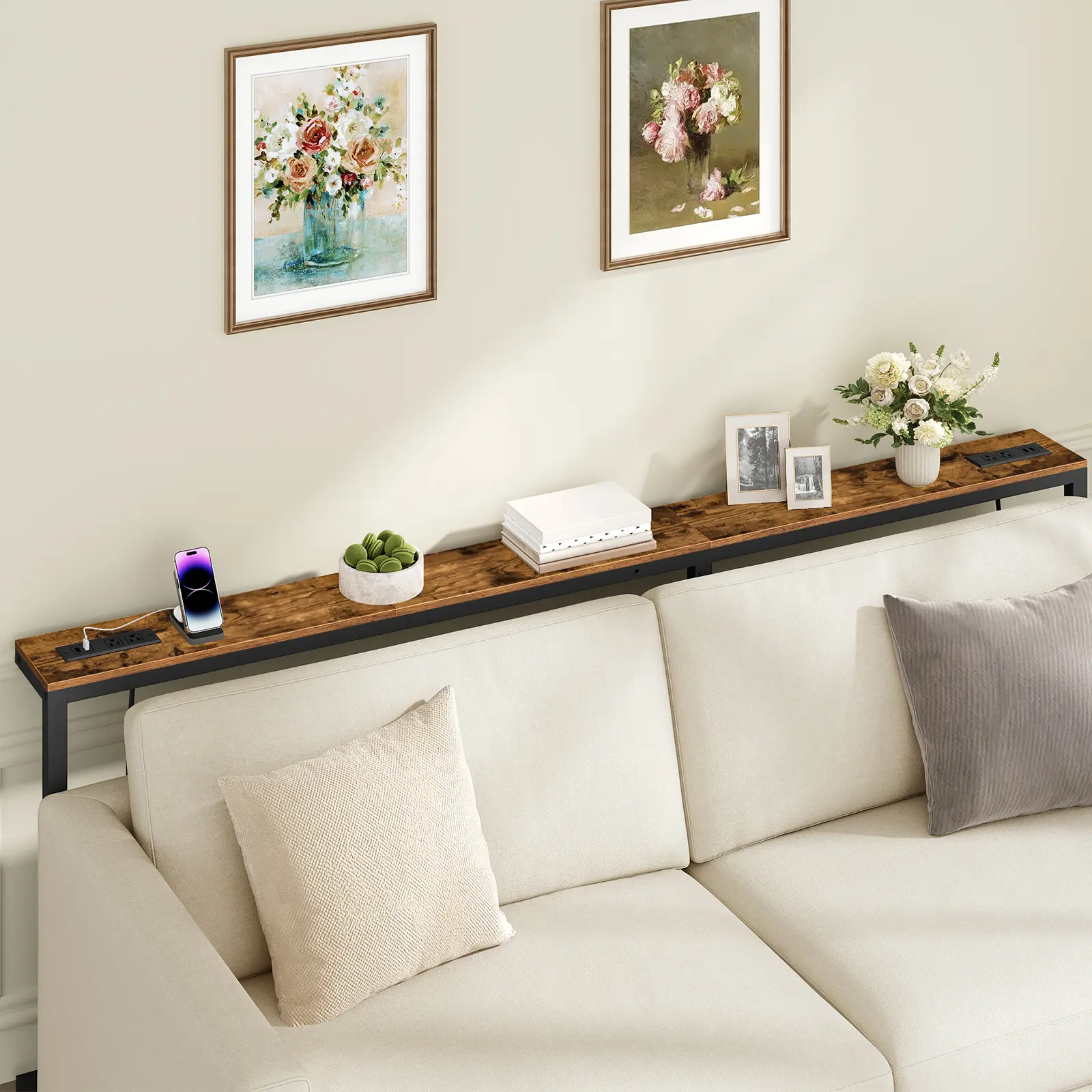 ·Space-Saving Solution: With overall dimensions of 78.7"L x 5.9"W x 32.7"H, this behind couch table is designed to easily fit in tight spaces like behind sofas or narrow hallways, turning unused spaces into organized storage areas for daily essentials