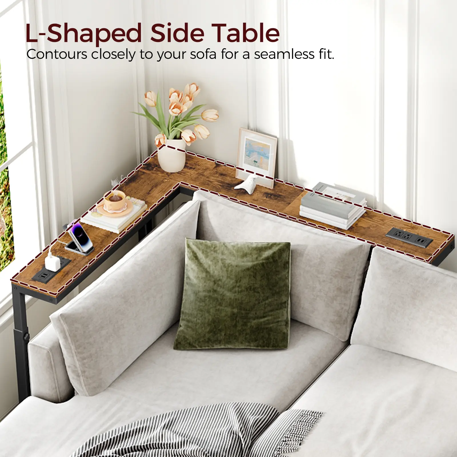 ·Versatile L-Shaped & Straight Designs: This console table offers two L-shaped configurations for wrapping around sofa corners and one straight design for hallways or walls. It adapts flexibly to your space, saving room while enhancing decor