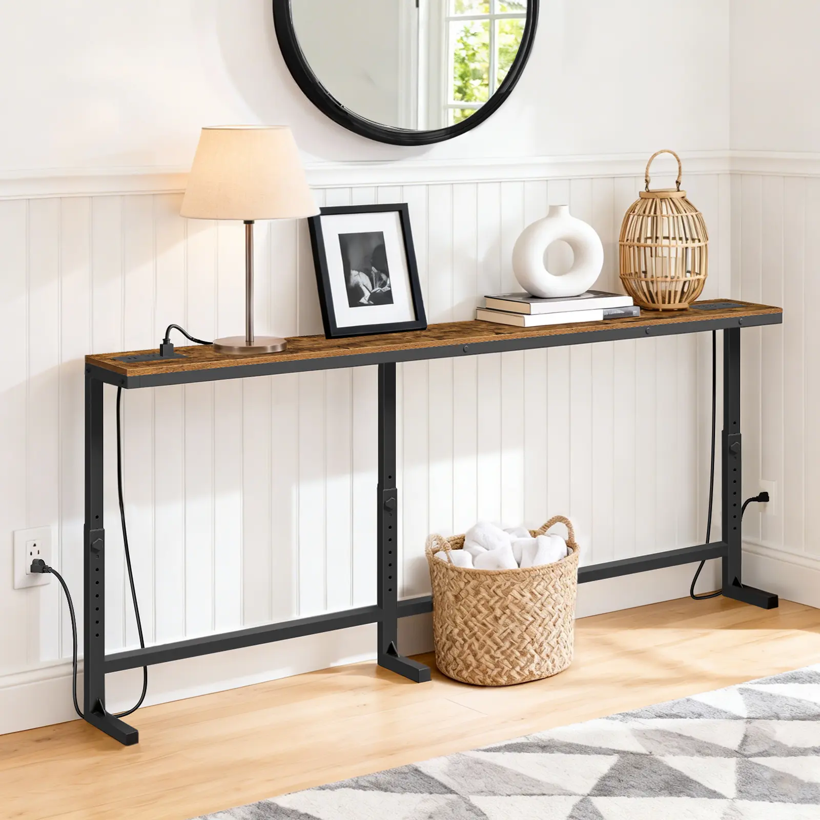 ·Built to Last: Made from high-quality engineered wood and a robust metal frame, this hallway table supports up to 44 lb, ensuring reliability and stability. An included anti-tip kit and extended support legs further enhance its sturdiness