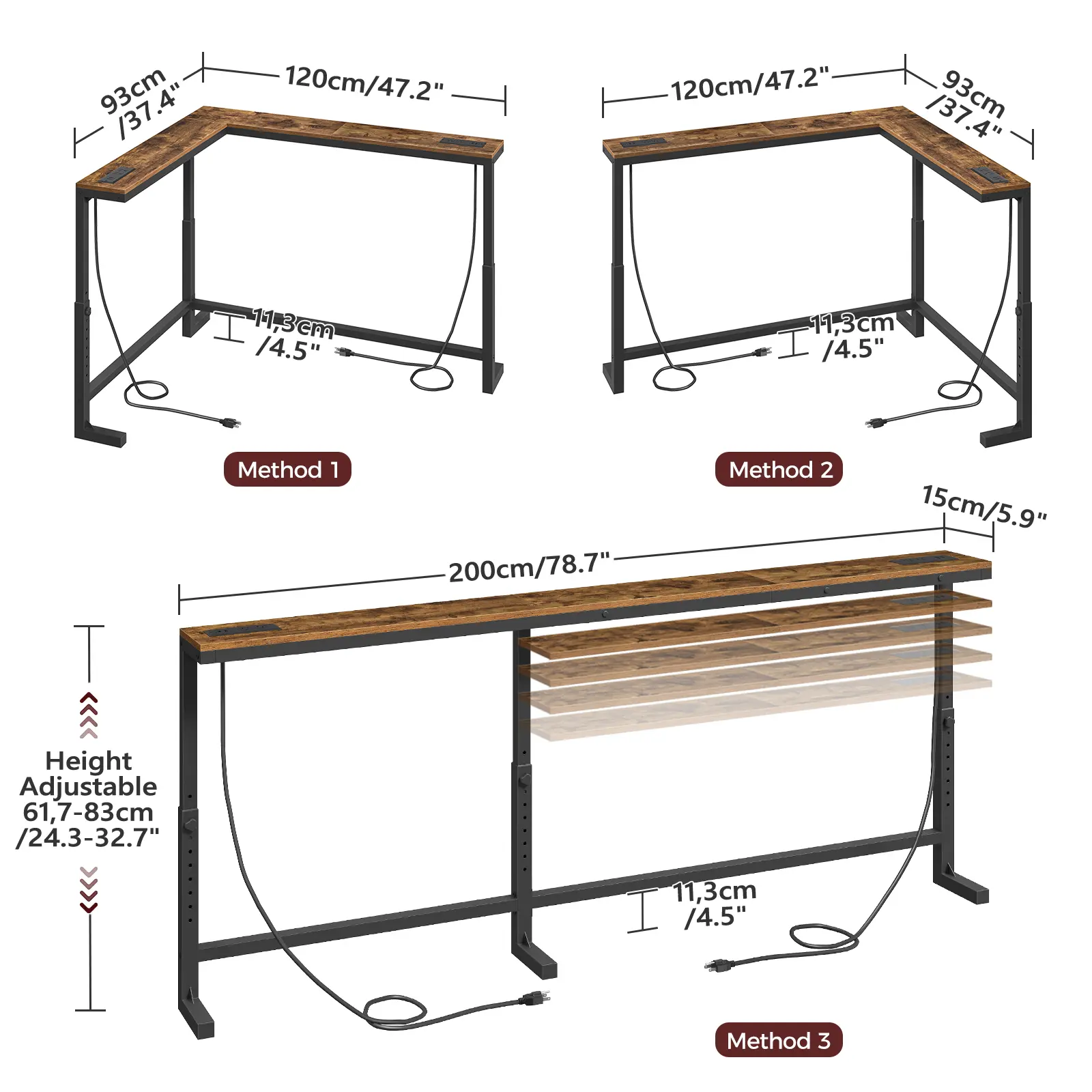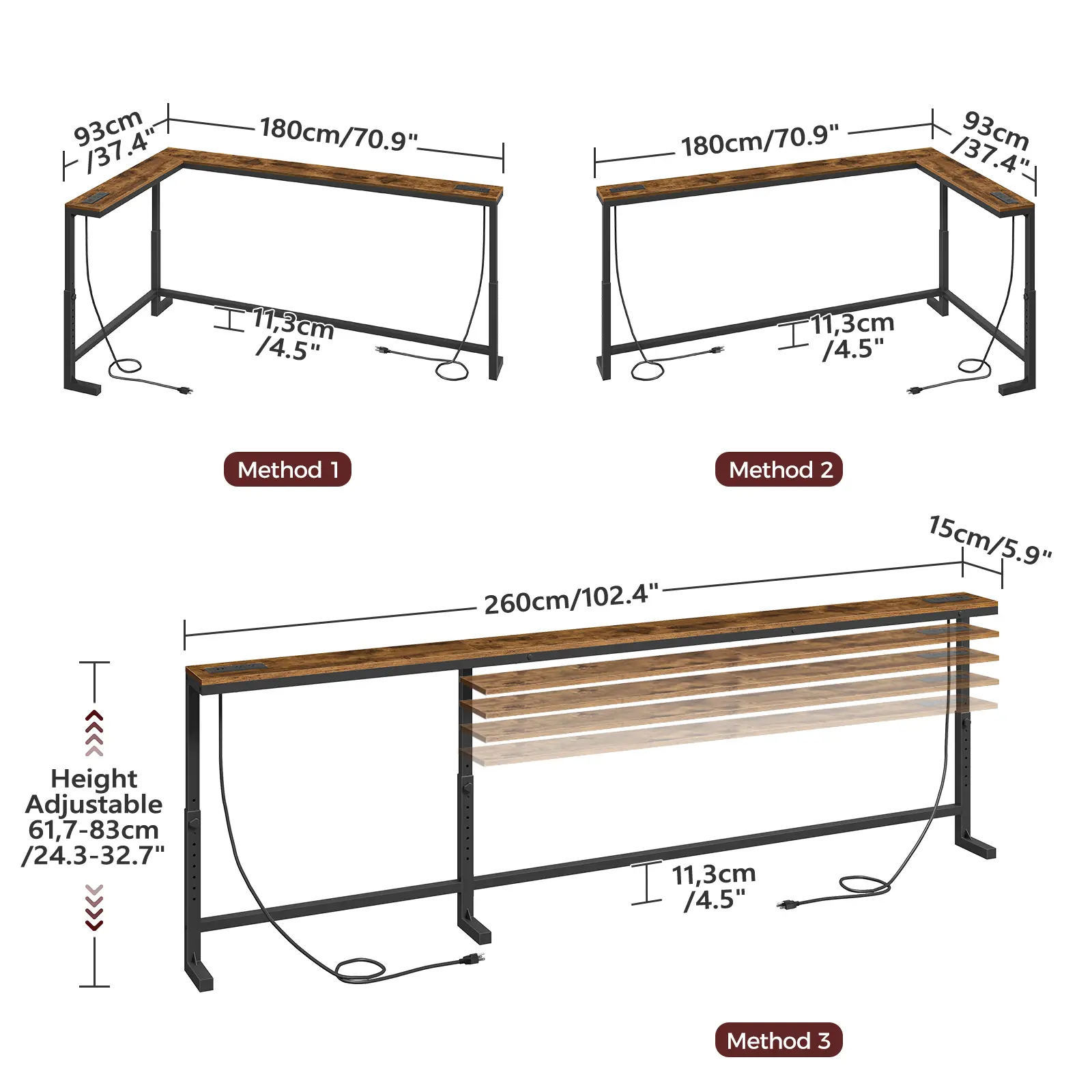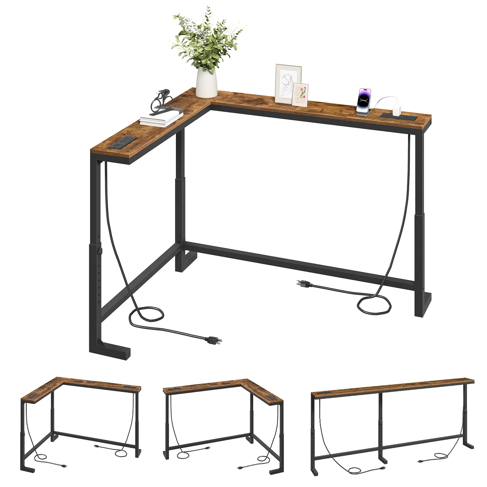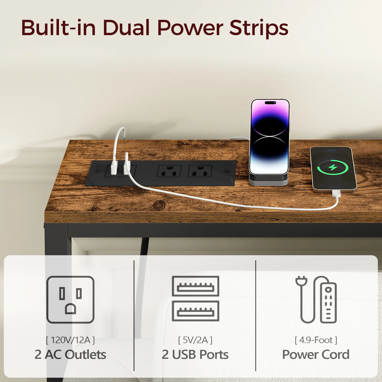 ·Dual Charging Stations: The tabletop includes 2 built-in power strips, each with 2 AC outlets, 1 USB port, and 1 Type-C port, allowing you to charge multiple devices simultaneously. The adjustable strip placement enhances convenience