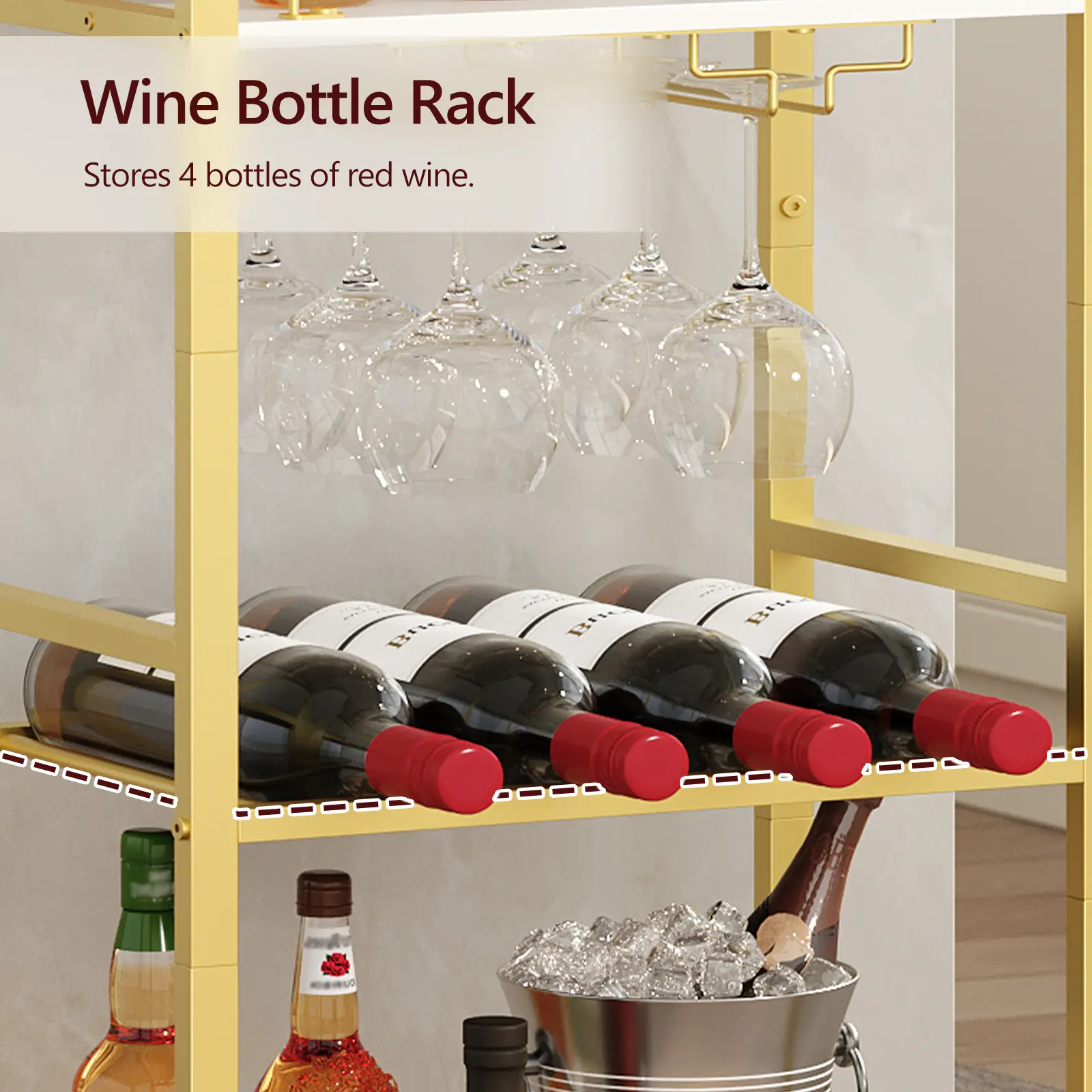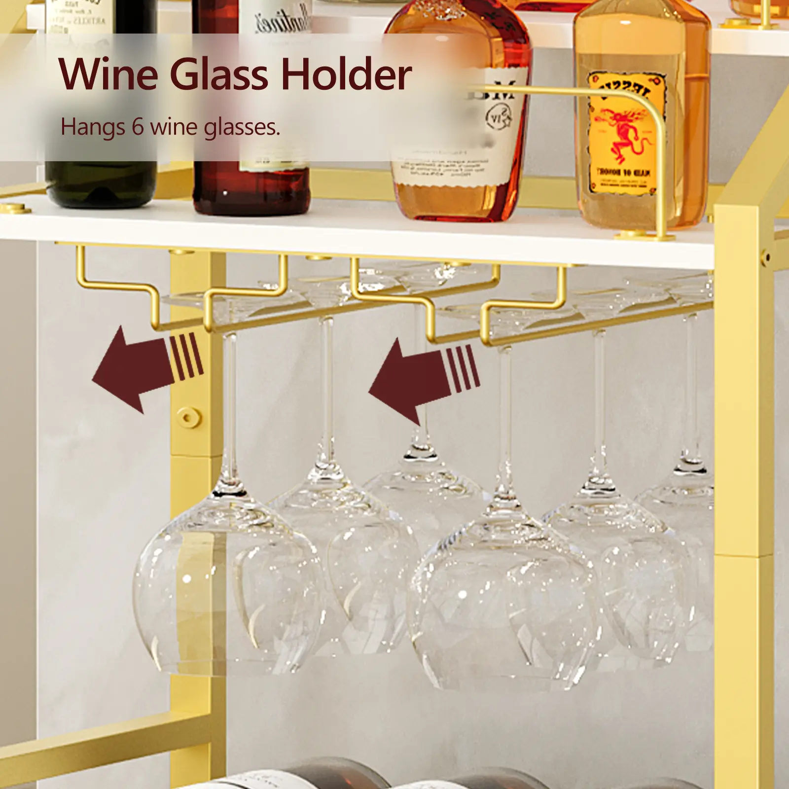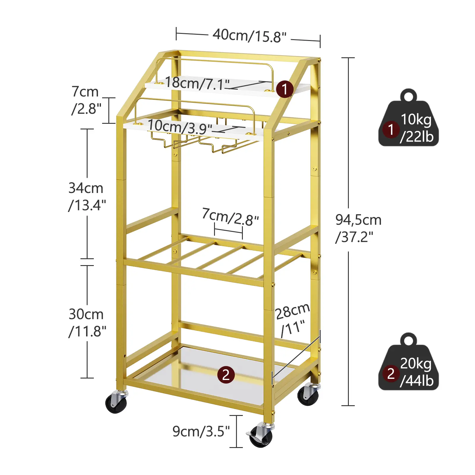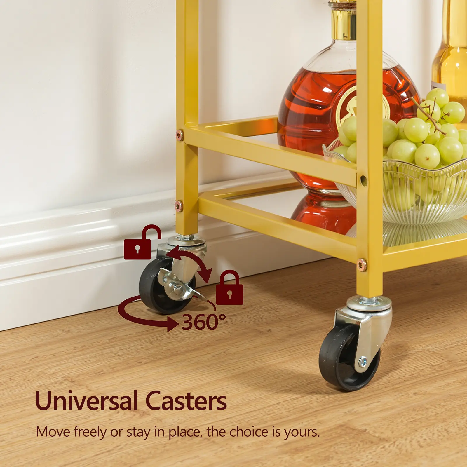·Smooth 360° Swivel Casters: Equipped with 4 universal wheels, two of which lock securely, the bar cart for home glides easily and remains stable when stationary. Roll it to the kitchen, living room, or any desired space without worrying about accidental movement