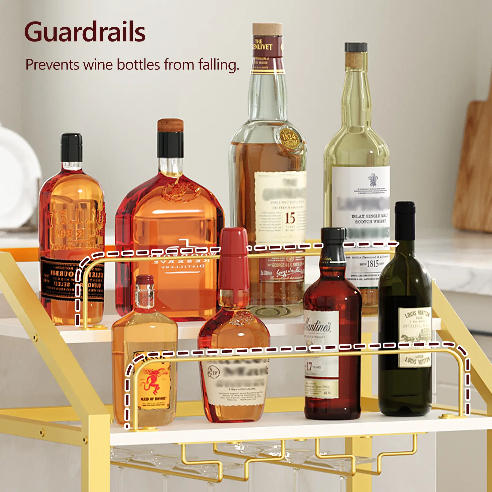 ·Protective Fence Design: Each tier of the wine cart comes with elevated guardrails to securely hold bottles and glasses, preventing slips and spills. Whether treasured vintage wines or everyday glassware, it lets you savor every moment with peace of mind