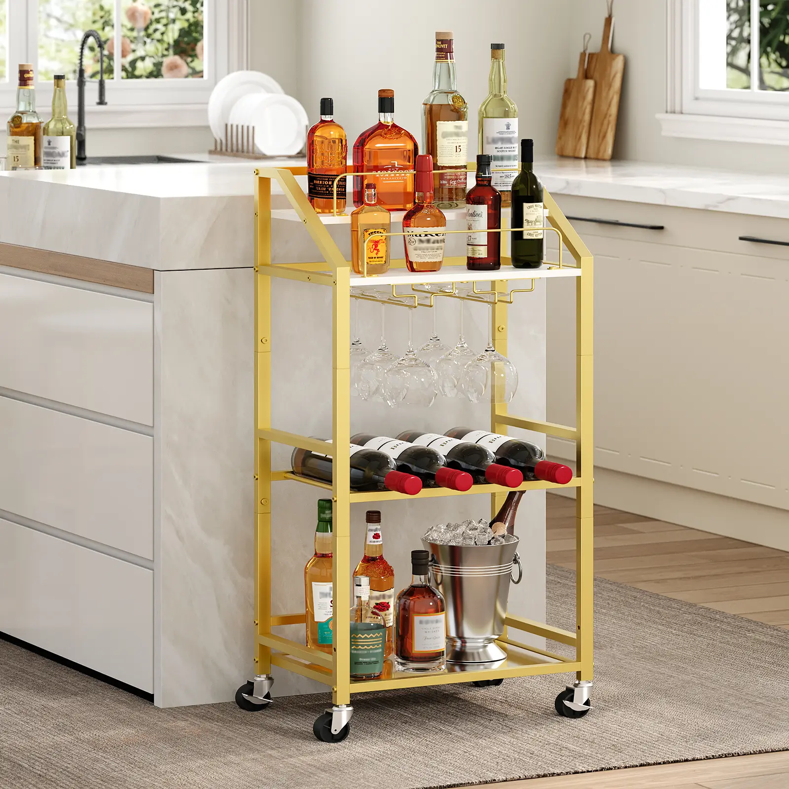 ·Versatile Functionality: This rolling bar cart is ideal for various uses, serving as a kitchen cart, a service cart for outdoor gatherings, or a snack storage rack in the living room. Keep your space tidy and functional with this multifunctional storage solution