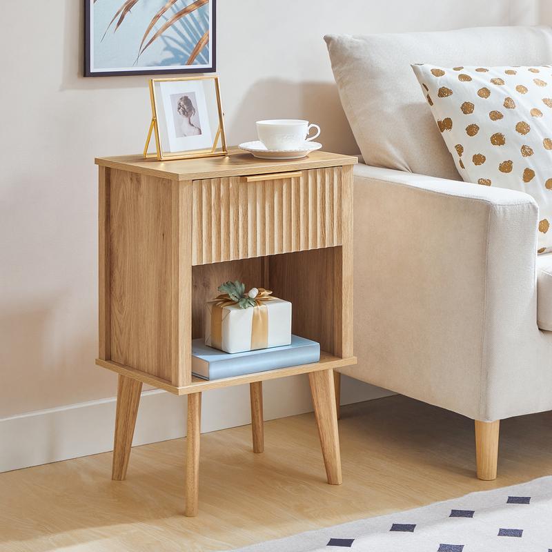 ·Fluted Drawer Panel: The drawer of the end table features a wave-pattered design with smooth curves outlining the elegant silhouette, making it both a decorative piece and a versatile complement to any decor style, adding an artistic touch to your space
