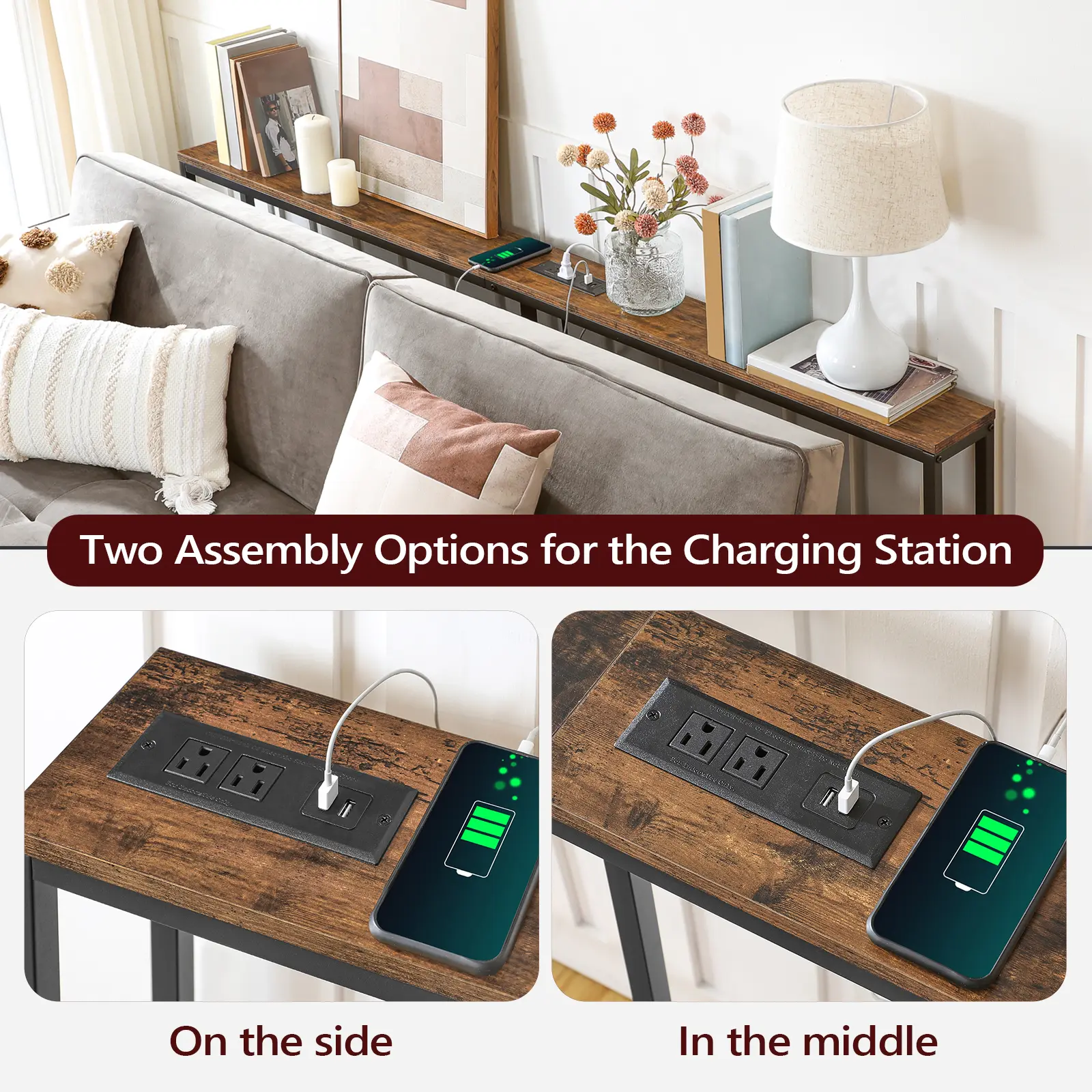 ·Sofa Table with Power Strip: The console table comes with built-in 2 plug outlets, 2 USB ports and a 59’’ power cord. The table top panel can be rotated, you can choose to place the power strip on the side or in the middle of the table as needed. With all the functions required for charging, the sofa table is ideal for your mobile phone, laptop, lamps and other electronic devices