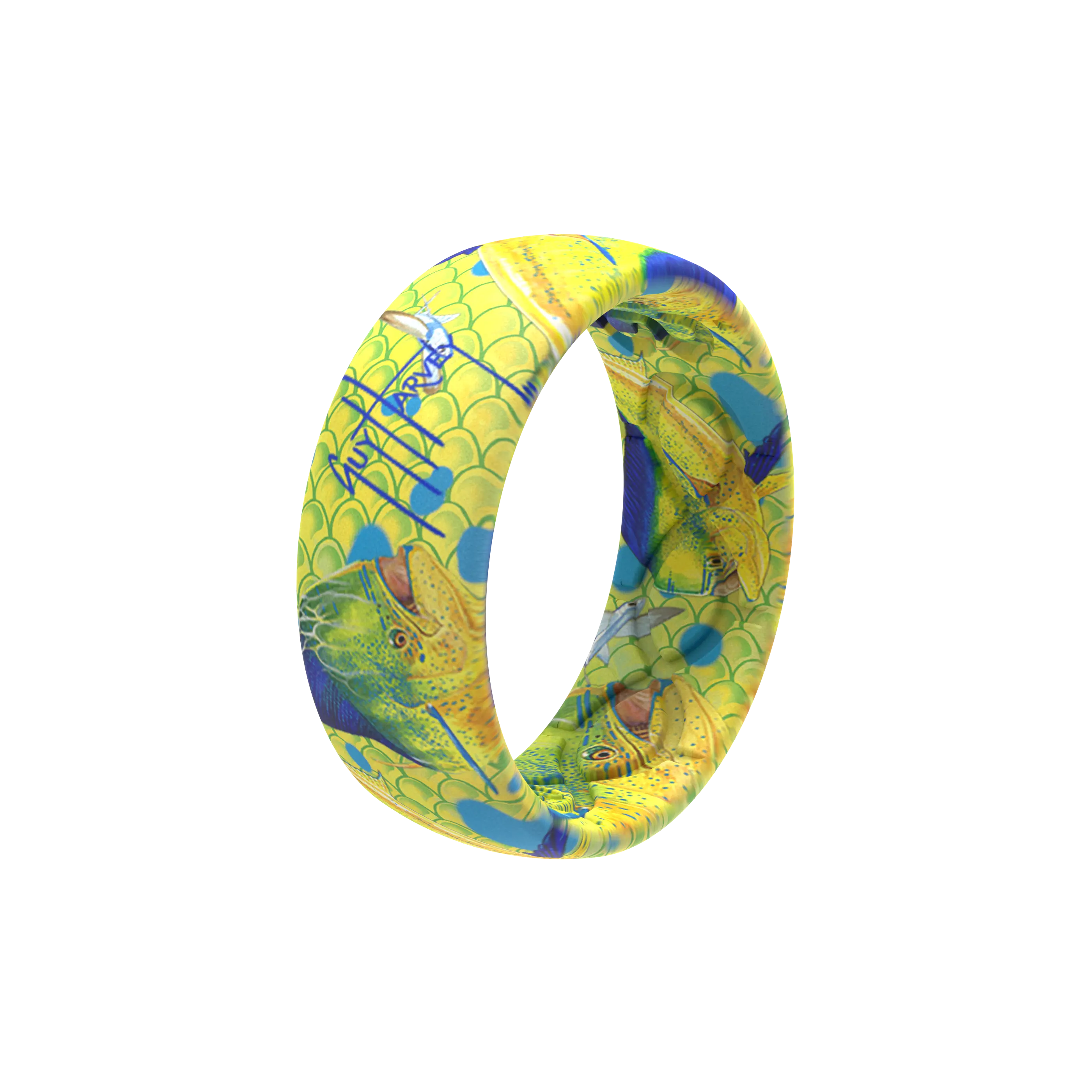 This one is my favorite. Mahi is my favorite fish. I love the color in the ring and that it's super comfy. I can wear it all the time and not worry about messing it up. Keeps my big set in the bix and safe.
