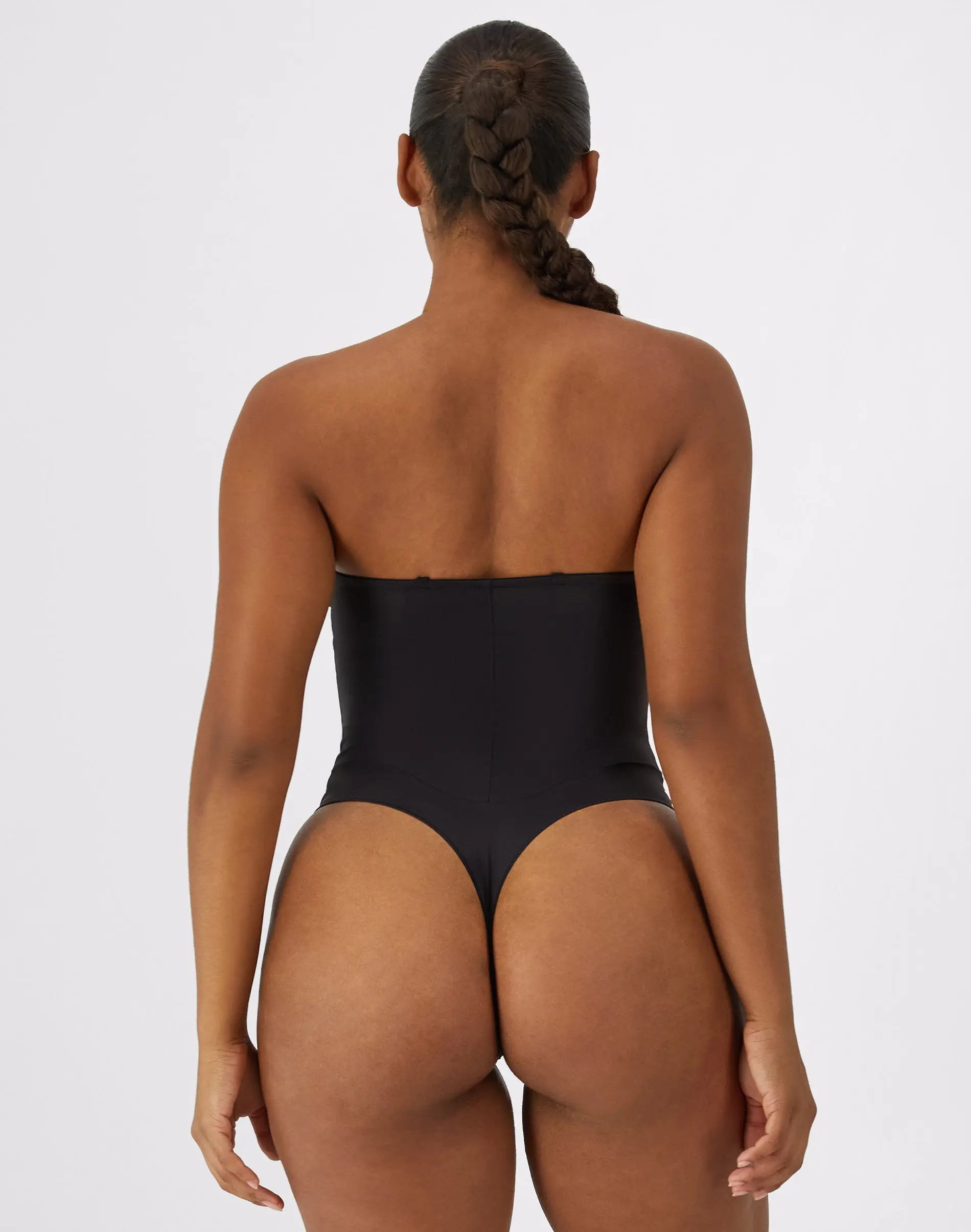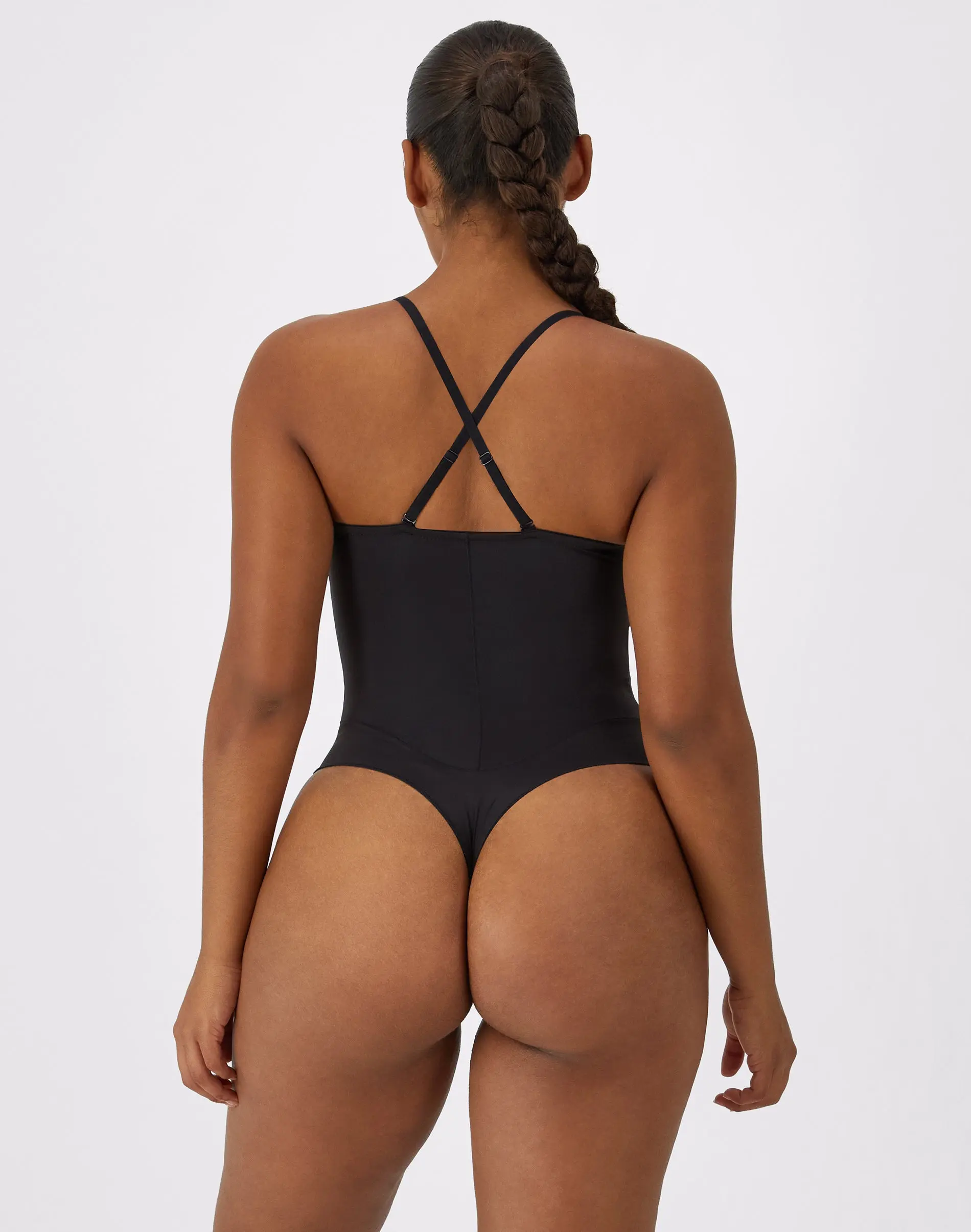 STAYS PUT - Silicone tape at the top of the cups helps hold the body shaper in place.