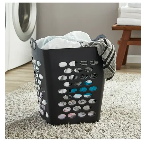 Mainstays Flex Square Laundry Hamper Black with Perforated Design for Ventilation and Easy Handling