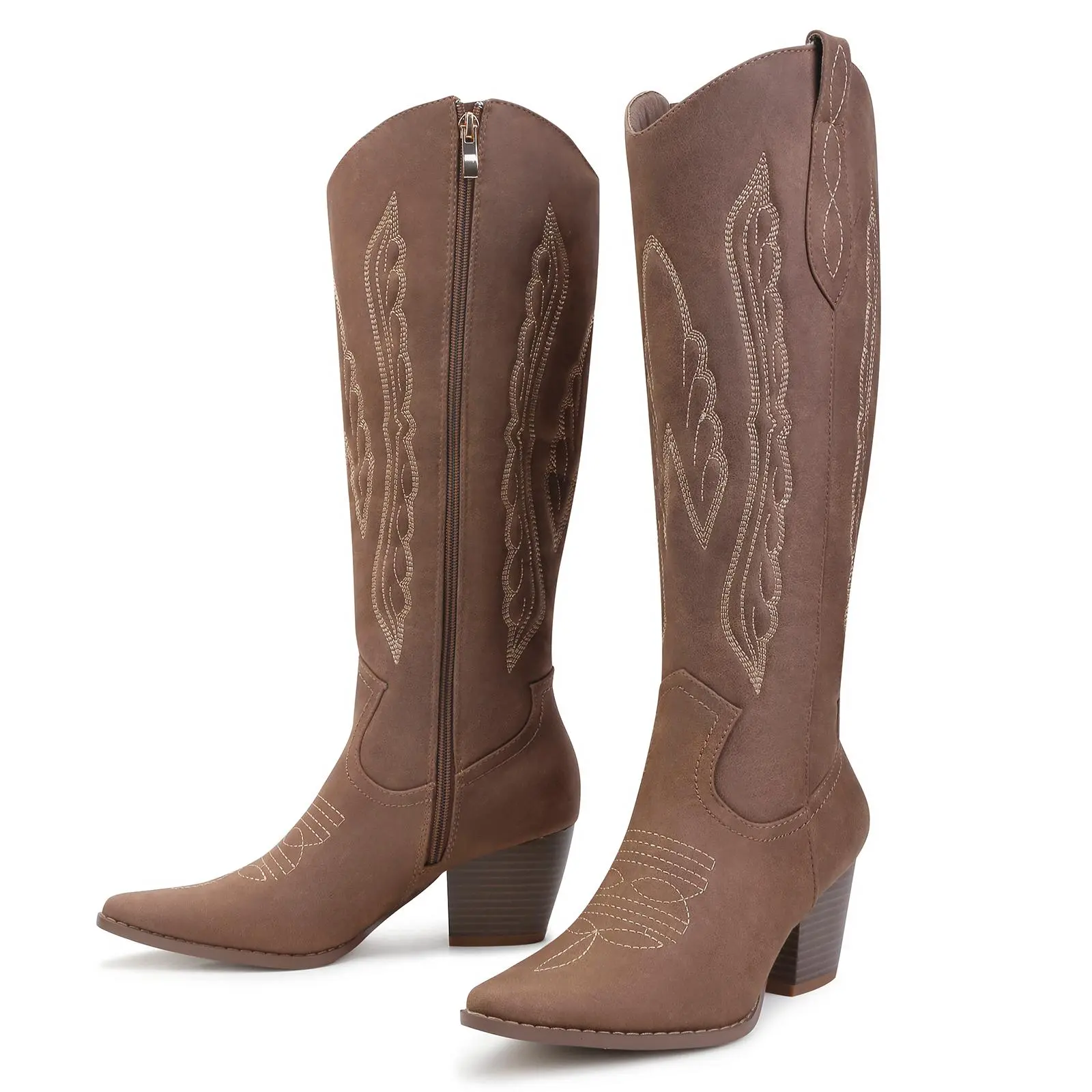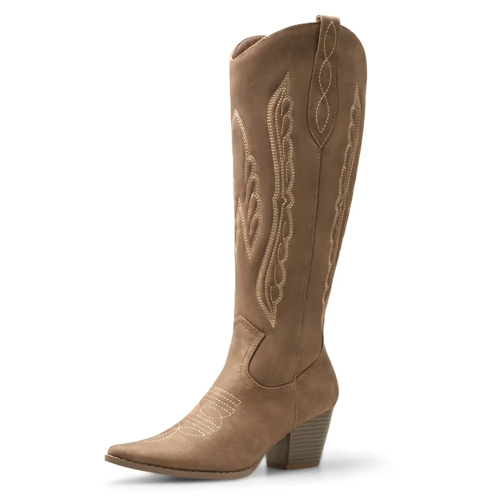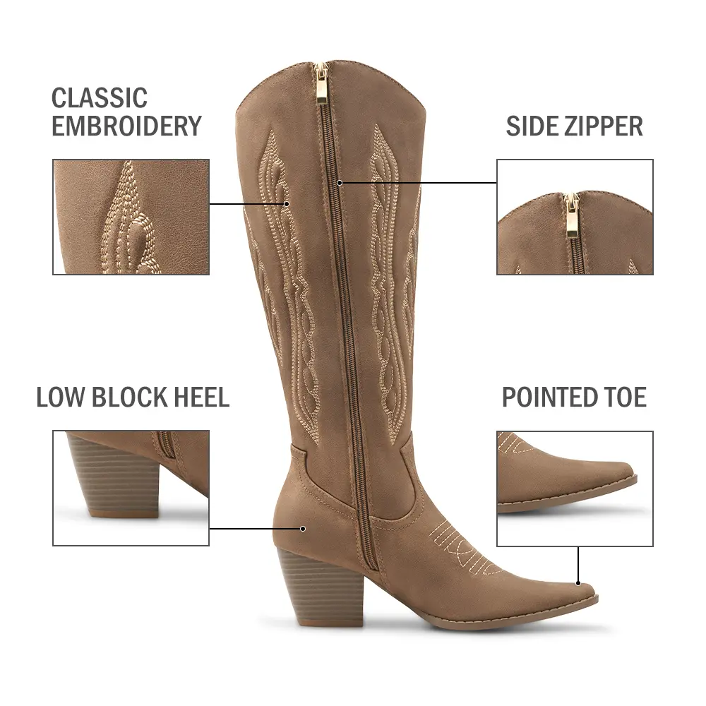 *Step into retro-chic confidence with these knee-high Western boots featuring: