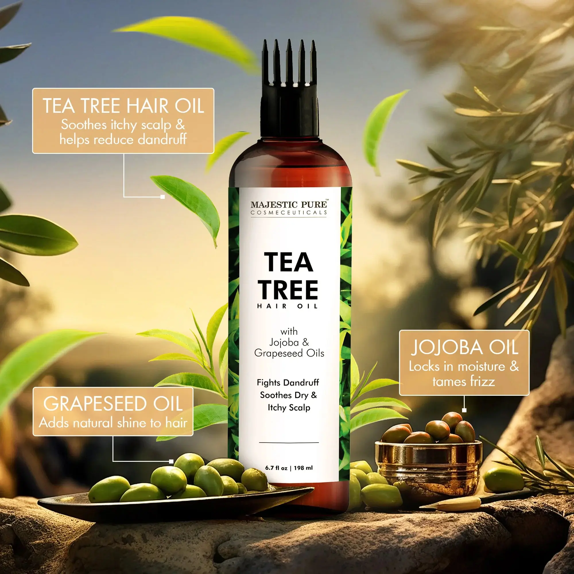 ยทSoothes Itchy & Dry Scalp: The Majestic Pure Tea Tree Hair Oil contains natural tea tree oil that provides a calming effect on the scalp, helps relieve dryness & itchiness