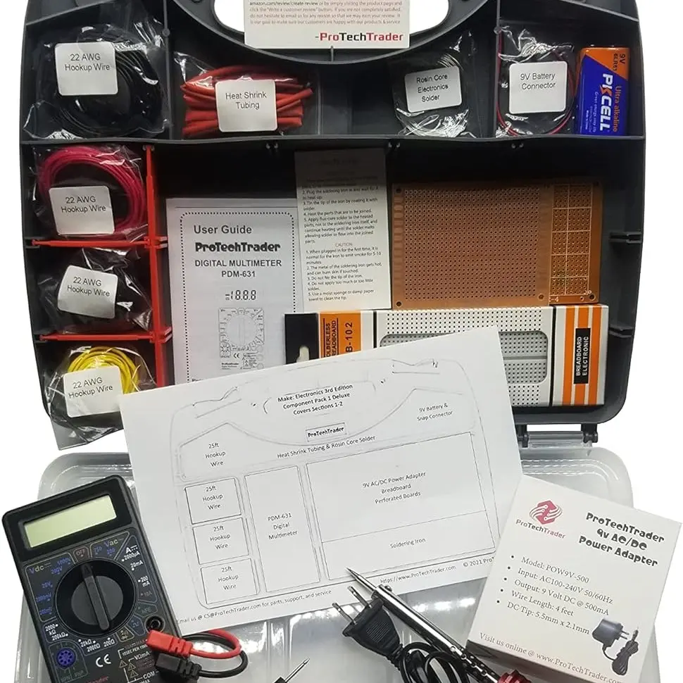 The ProTechTrader Make: Electronics Kits have been designed specifically for the updated and rewritten 3rd Edition of Make: Electronics (2021 - Charles Platt). We worked with Charles Platt directly for our kits to complement and match his experiments, just the way he wanted. The ProTechTrader electronics kits are highly recommended by the author and are a perfect introduction for the new electronics enthusiast. Geared towards beginners Make: Electronics 3rd Edition is the top educational book for students through professional adults wanting to learn basic electronics and circuit design.