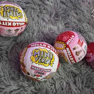 Each ball comes with realistic mini items to make your own mini replicas of your favorite Hello Kitty themed foods, including a Hello Kitty themed Bento Box, Fruit Boba Tea, and even Instant Spicy Noodles! Each package is a SURPRISE, so you won't know which mini you have until you unbox it! Compare the contents of your package with the included collector's guide to see which mini theme you have. Follow the instructions on the back to make and set your mini.