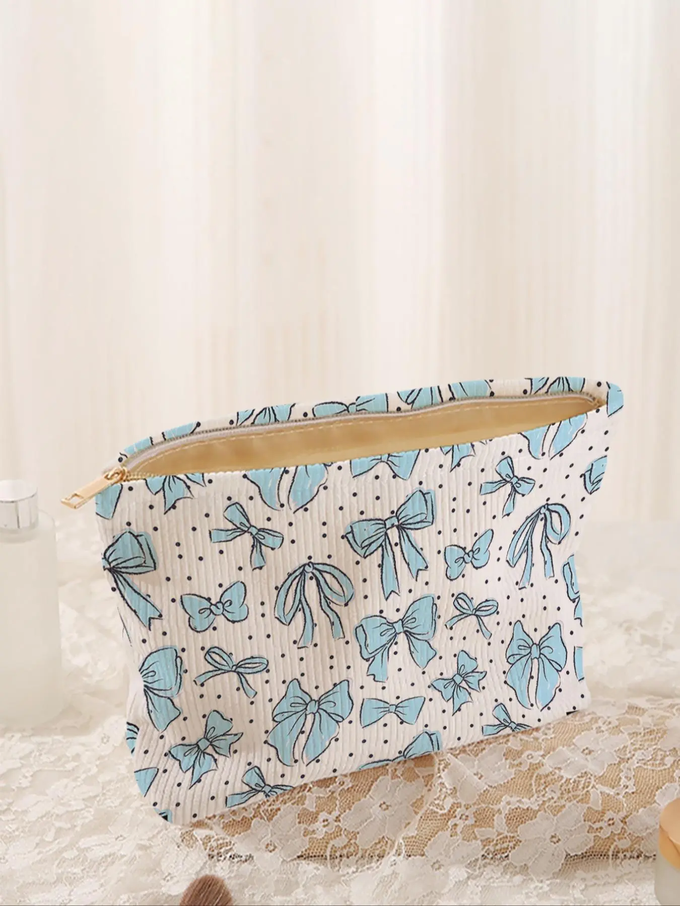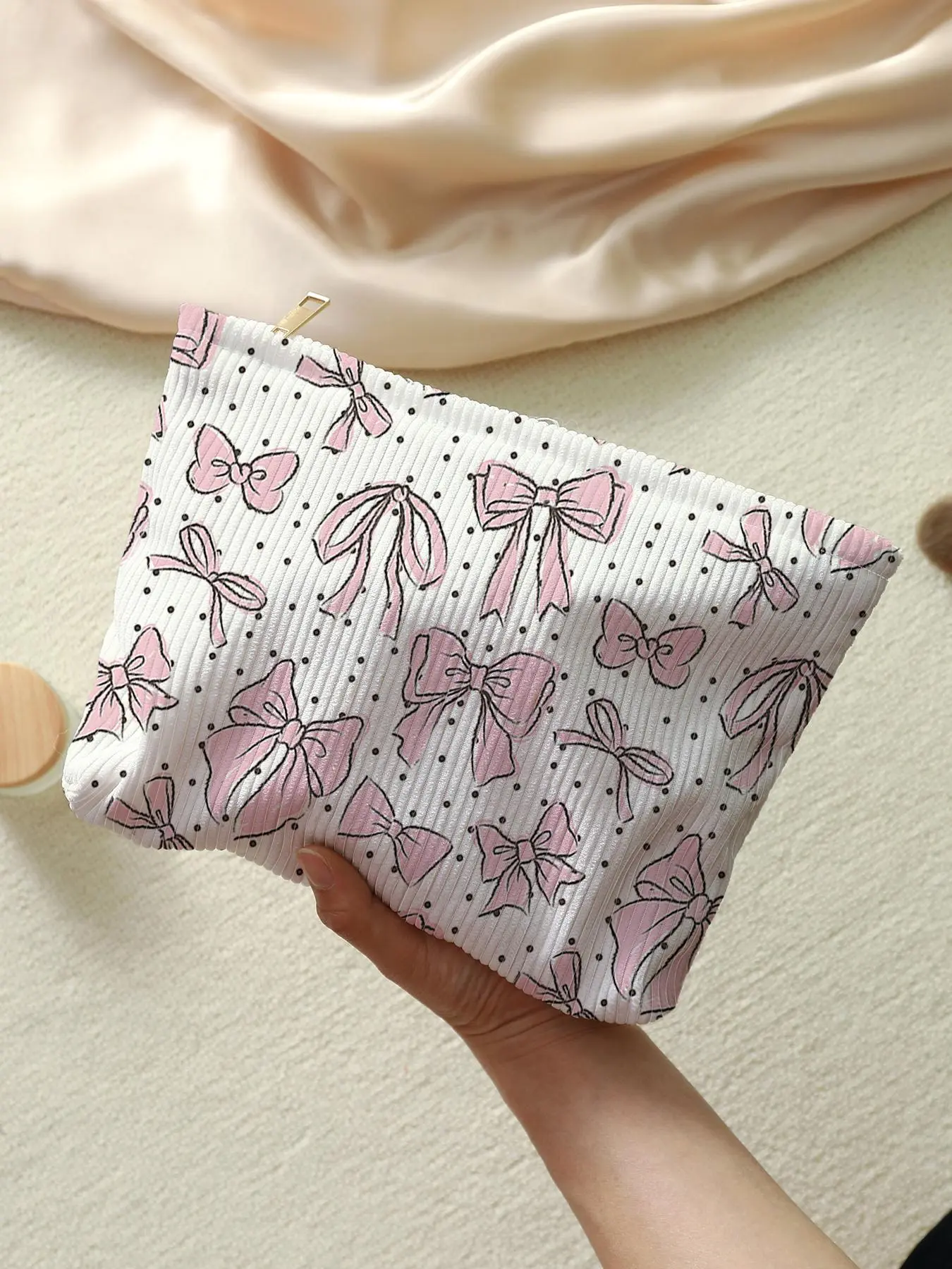 The cutest make up bag! My daughter is obsessed! Not to bulky or too thin! It’s the perfect material!! Also love the gold zipper, perfect details! ❤️❤️