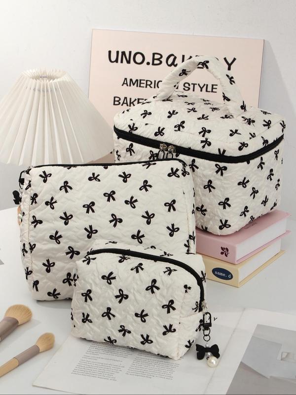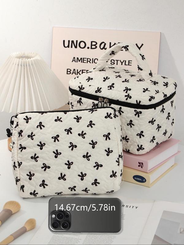 Bow Pattern Makeup Bag Set, Multi-functional Makeup Storage Handbag, Portable Zipper Makeup Bag, Travel Toiletry Bag, Cosmetic Pouch, Makeup Container Set