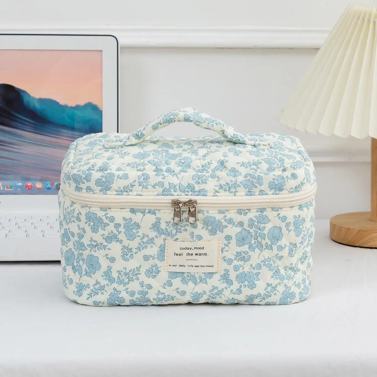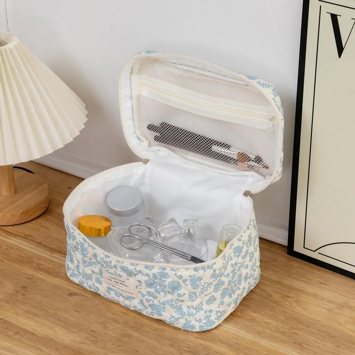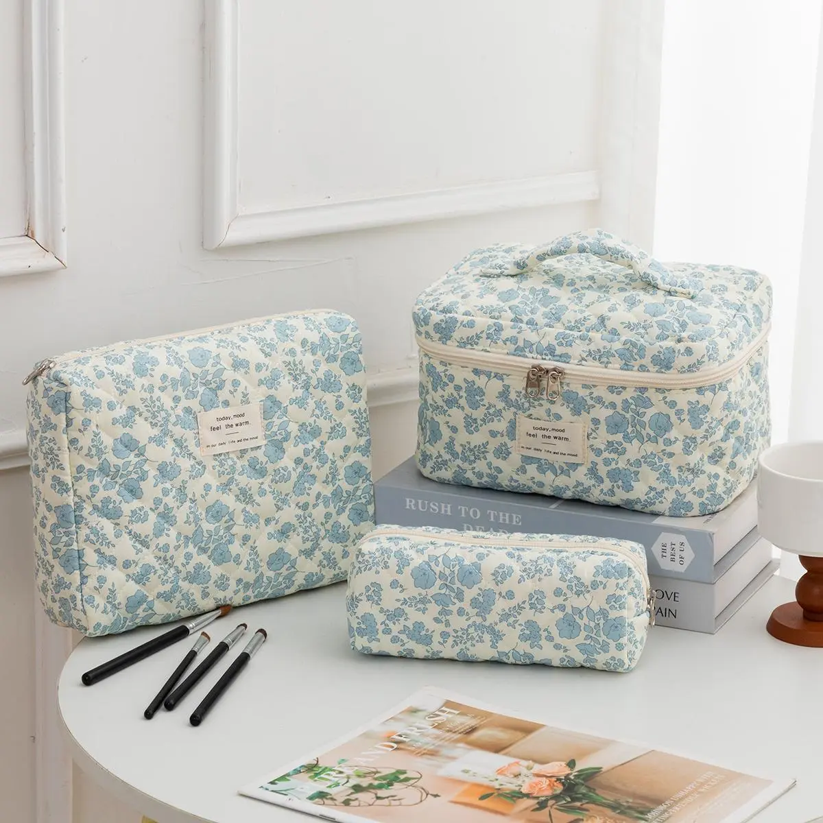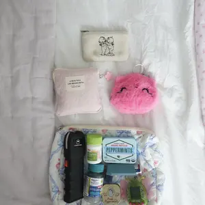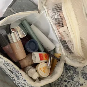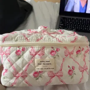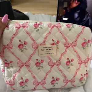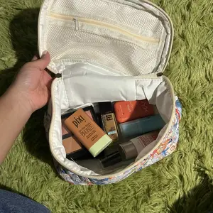 super cute and good quality make up bag!! There a really good size for the price and very spacious inside as well. Soft fabric overall great and resourceful makeup bag.
