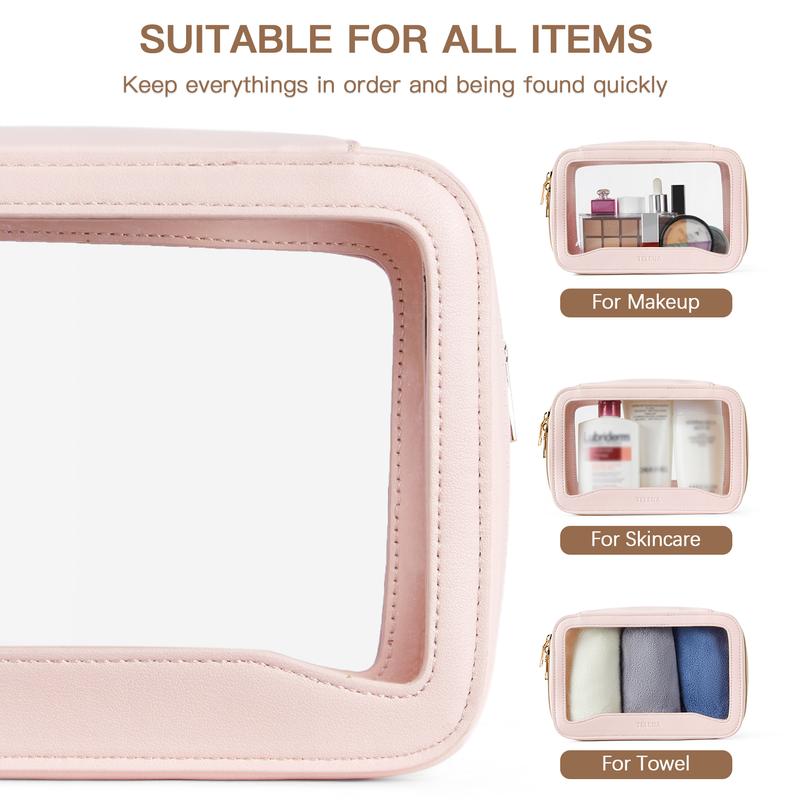 Made with high-quality TPU material, this clear makeup bag is waterproof, dustproof, and easy to clean.