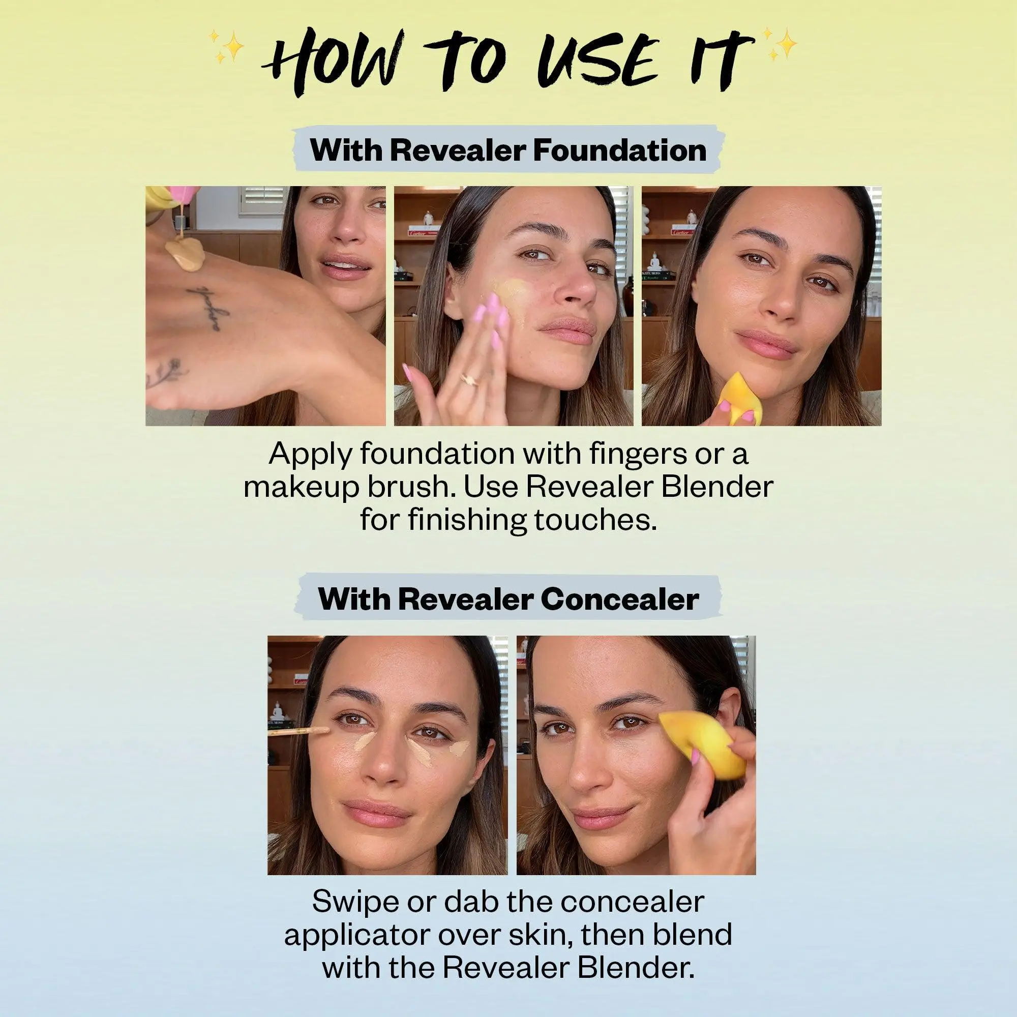 The Ultimate Beauty Blender for Revealer Formulas. The unique dual-ended sponge has a fine point to reach even the tiniest corners of eyes, and the larger end blends so seamless and quick for a best-real-skin finish. Perfect for Revealer Concealer + Revealer Foundation. Super soft, easy to clean, use it damp or dry. Details + Materials- Latex-free foam- Dual-ended