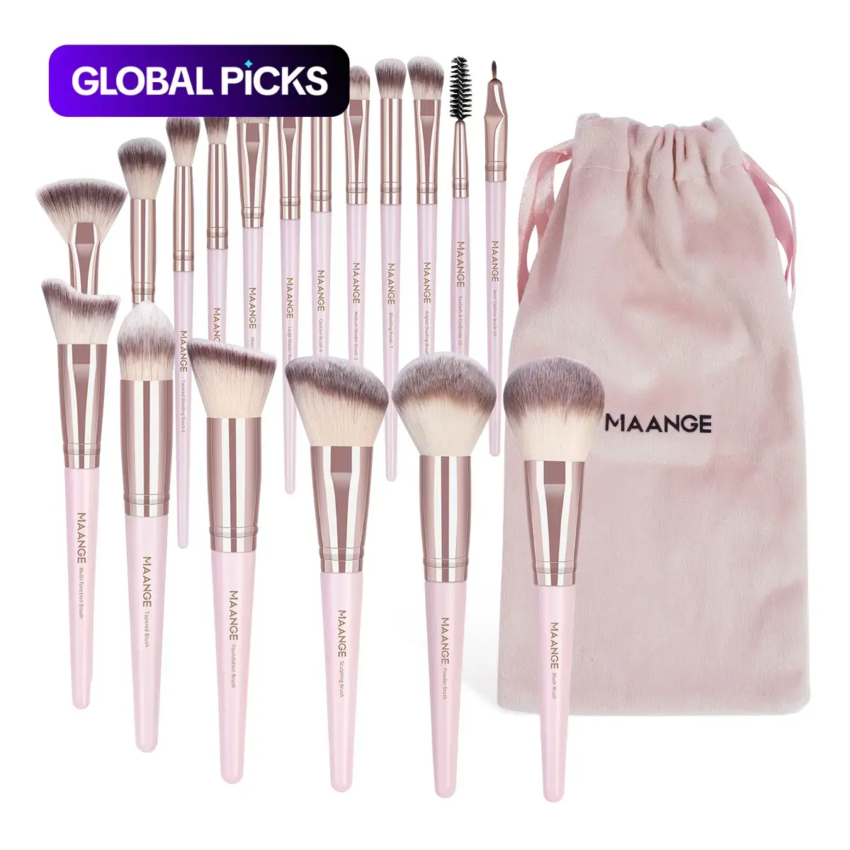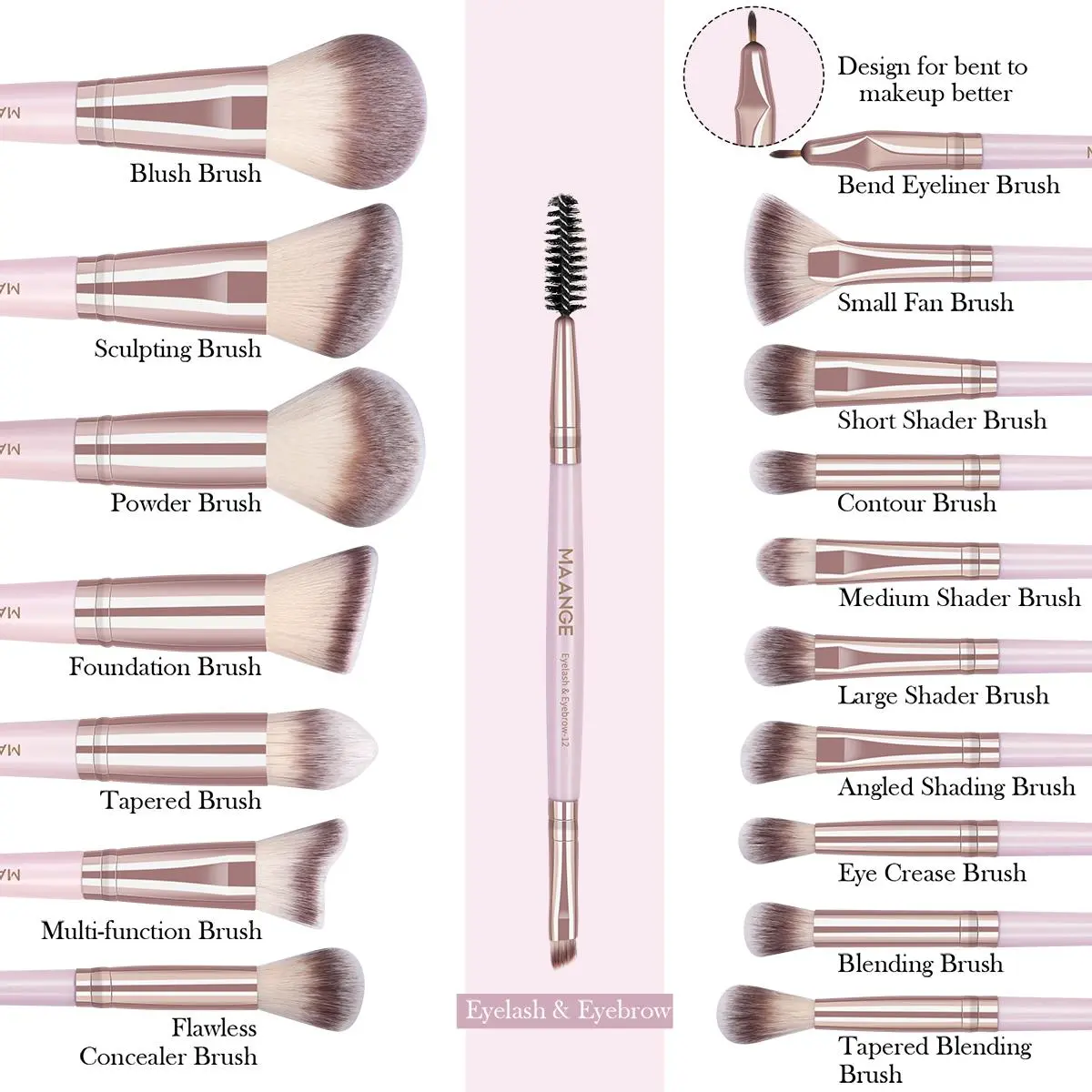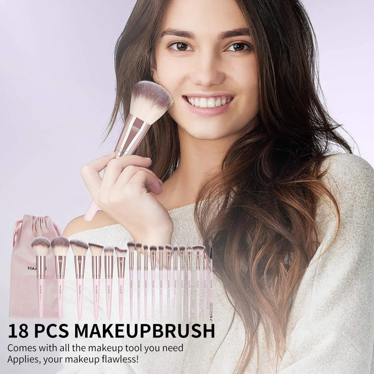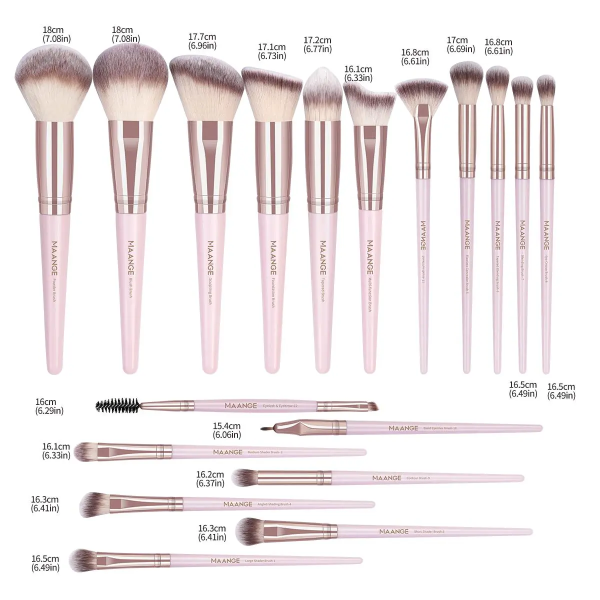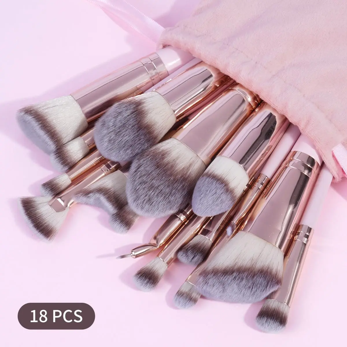 【Complete Set】: Features an 18pcs set encompassing brushes for foundation, powder, eye shadows, and more, addressing all your makeup needs.