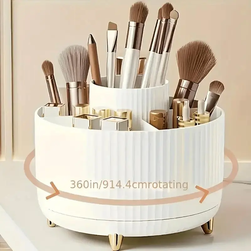 Makeup Brush Storage Box, 1 Count 360° Rotatable Makeup Brush Holder, Multi-functional Desktop Storage Rack for Brush, Lipstick, Skincare