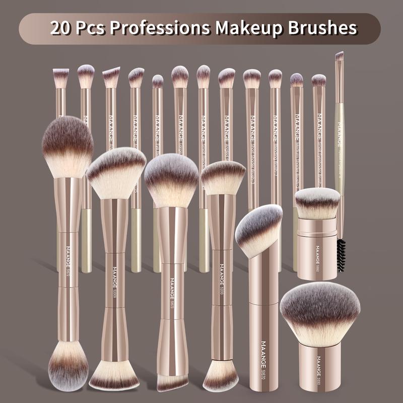 20pcs brushes + 1pc Puffs + Storage Case - Brown