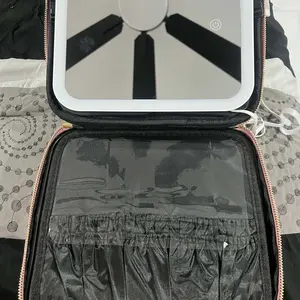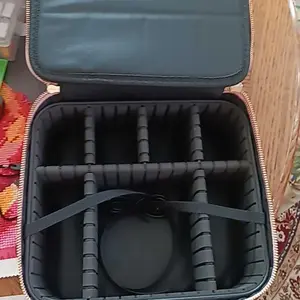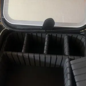 Just recieved, very nice quality both make up bag, dividers, slots and the movable light up mirros is awesome!