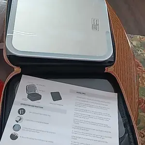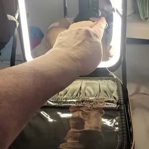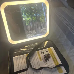 Mirror doesn't stand like stated, straps aren't positioned right & move causing mirror to fall, light is great & works. Case isnt tall enough to hold makeup and travel items like stated. Brush holder plastic is warped, won't zip correctly with brushes inside holder.. pics attached.