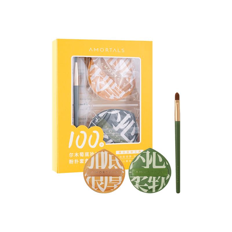 5. AMORTALS A+ Makeup Cushion Puff Set XL Include 2 Cushion Puffs and 1 Concealer Brush