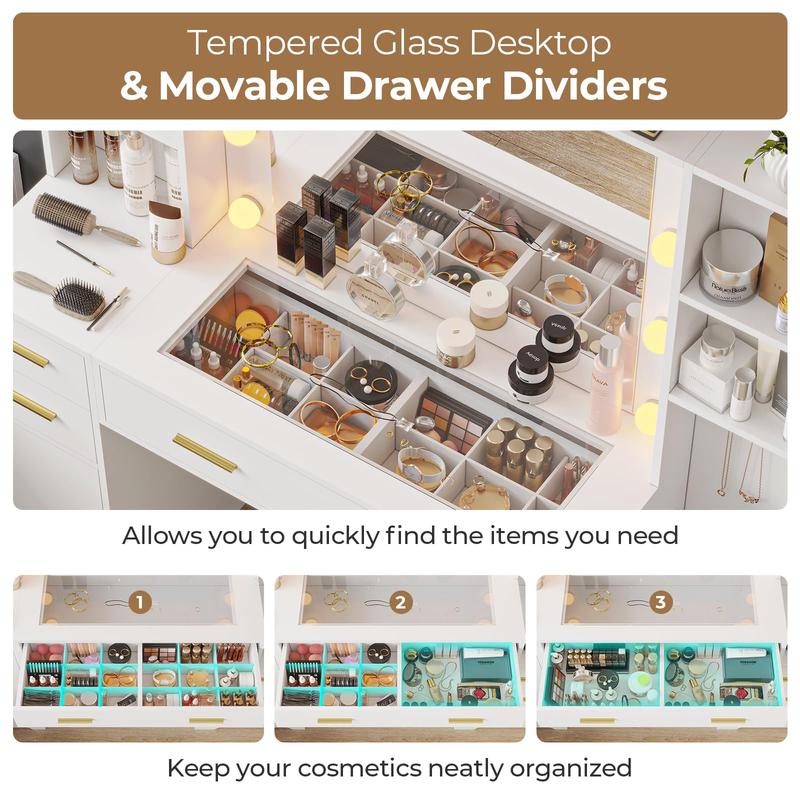 Vabches Vanity Desk Large Vanity Table With Glass Top And Lots Storage