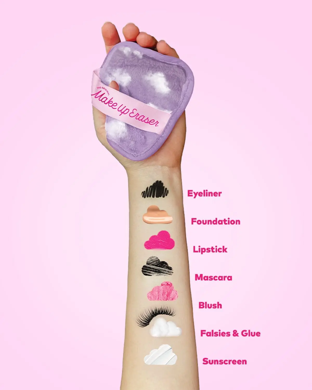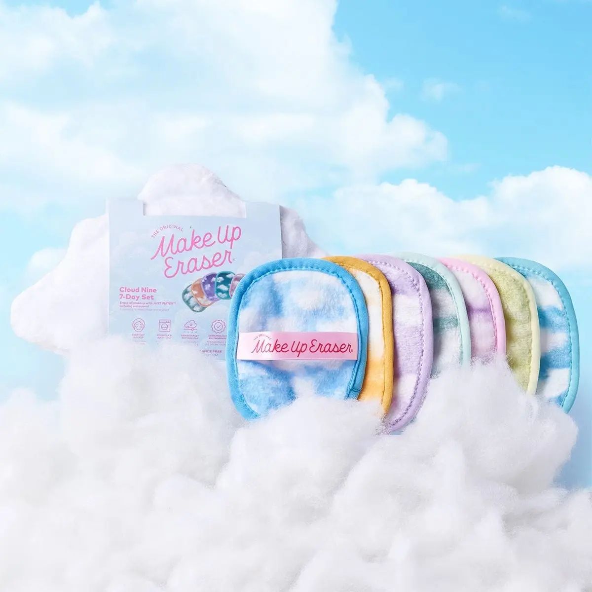 Erase all makeup with JUST WATER including waterproof. Our patented, water-activated, cloud-soft fibers gently & easily remove all makeup & sunscreen from pores. 2 in 1 benefit: one side erases makeup & one side exfoliates skin.