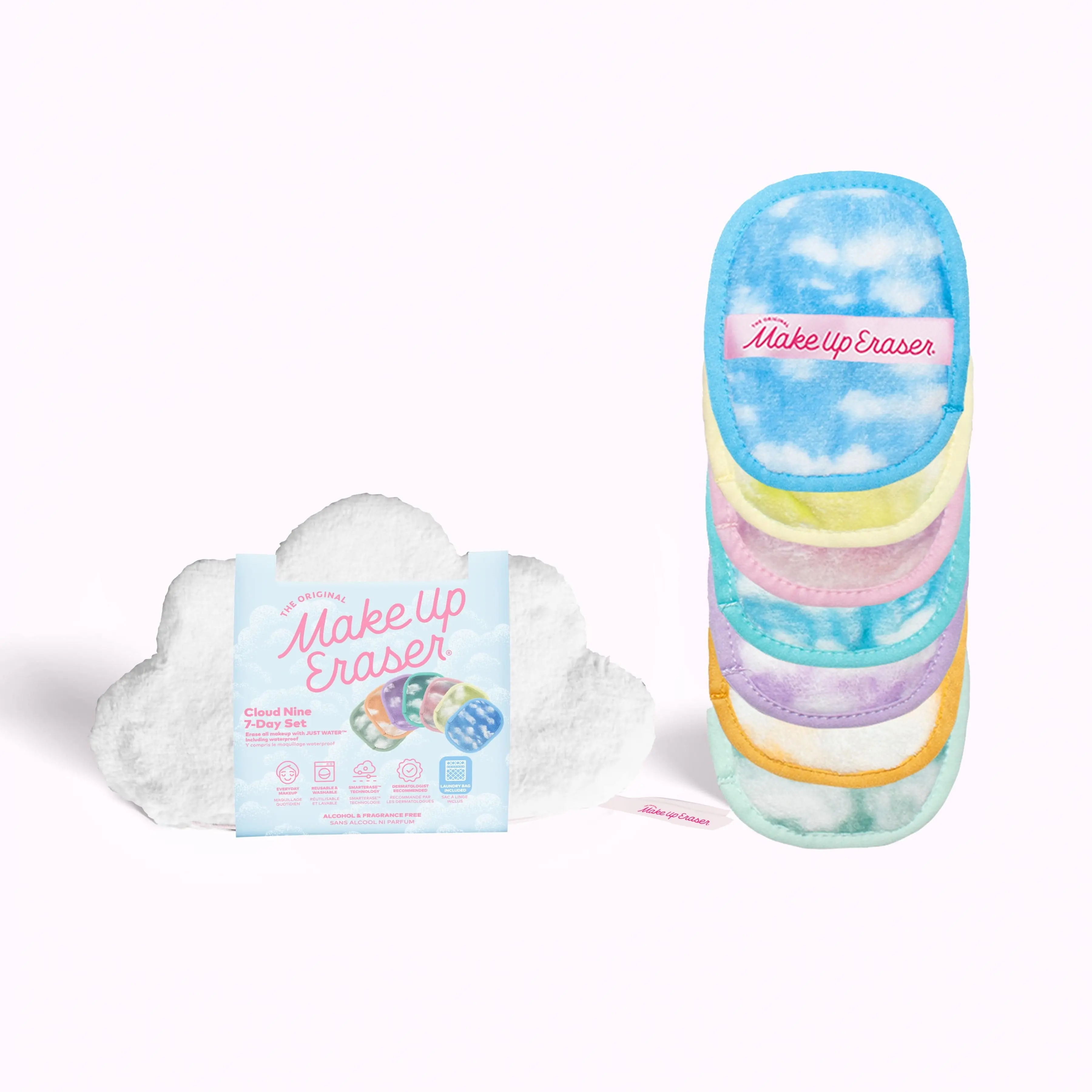 Includes 7 MakeUp Erasers, 5in x 4in. Makeup bag + laundry bag included.